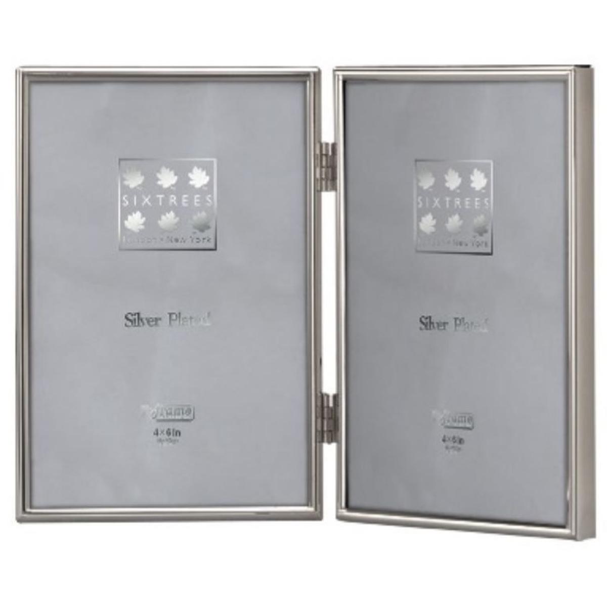 Sixtrees Cambridge Double Photo Frame - Silver Plated - 6x4 Landscape, Velvet