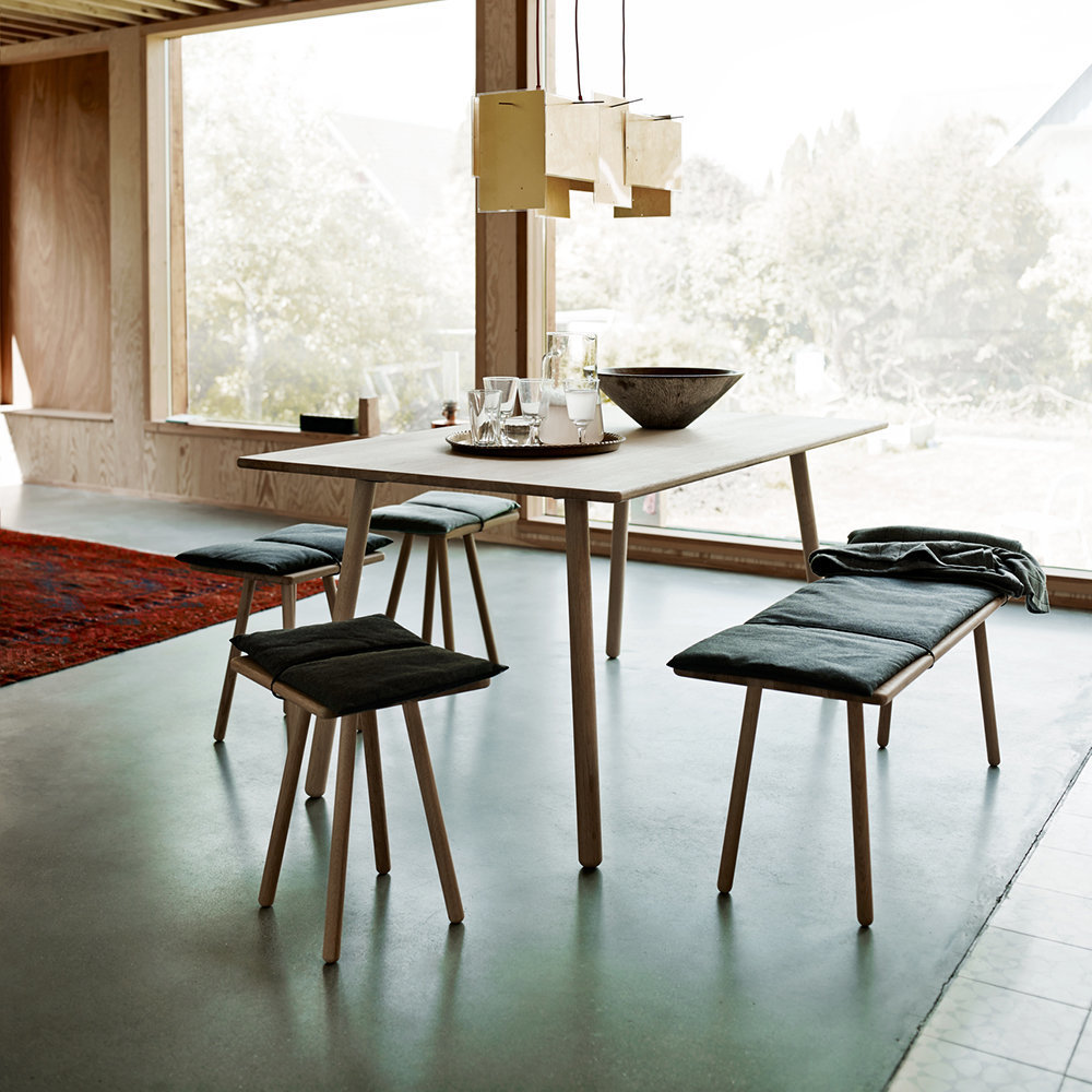 Nordic sensuality and Japanese minimalism come together in perfect harmony with the Georg table from Skagerak. Designed by Chris Liljenberg Halstrøm, this table sits at least 6 people around it without taking up to much of your living space. Crafted from a FSC certified oak mix, choose from warm wood tones or a black finish, both looks are the perfect complement to the design's sleek clean lines.;Skagerak recommend using a clean soft brush or a microfiber cloth to wipe the wood gently for dust or small pieces of debris trapped insight the grooves.