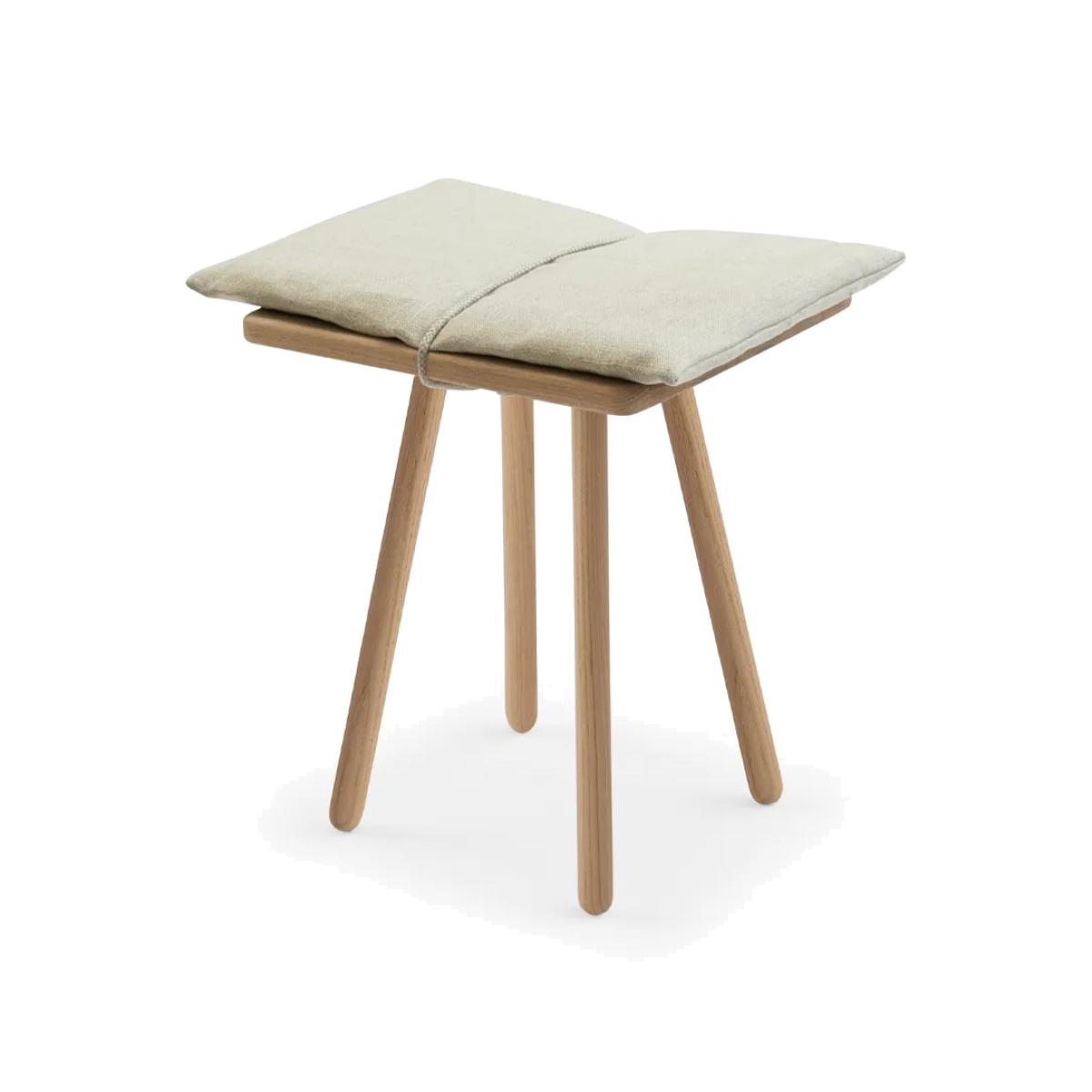 I love this stool for its simple, minimalist design that effortlessly blends natural materials with functional form. The untreated linen cushion adds a touch of softness and comfort, making it practical for both everyday use and as an occasional seat. Its oak frame provides durability and warmth, working particularly well in Scandinavian-inspired interiors, but it also complements contemporary, rustic, or even minimalist schemes. For styling, I recommend pairing the stool with neutral tones and textured textiles to emphasise its organic quality-placing it next to a sofa, in a cosy reading nook, or even as a side table with a tray on top. Its understated elegance makes it versatile, and layering it with other natural elements enhances its relaxed, timeless appeal.