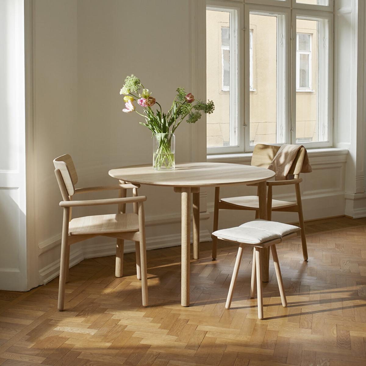 Bring natural beauty to your interior thanks to the Hven round table from Skagerak. Designed by Anton Björsing, this version is the perfect table for the kitchen or smaller homes. Crafted from FSC certified oak, it features a stunning grain pattern that will enhance any interior. The soft round legs and corners add to its minimalist design, and it comfortably fits four.
