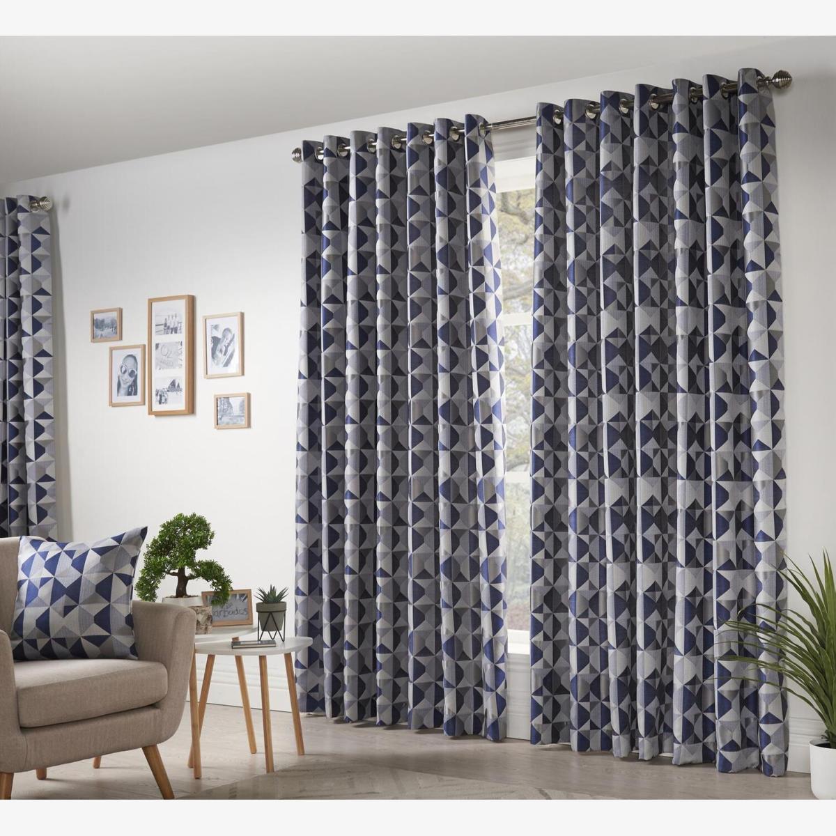 I love these navy eyelet curtains for their versatile, contemporary look that works well in both modern and Scandinavian-inspired interiors. The geometric pattern adds visual interest without overwhelming the space, making them a great choice for living rooms or bedrooms where you want a stylish yet practical window dressing. The navy hue lends a sophisticated touch that pairs nicely with neutral tones or bold colour accents. Practical styling tips include pairing them with light, layered furnishings to keep the room feeling fresh and inviting, and utilising their length for a cosy, draped effect. The eyelet top makes dressing and undressing a breeze, and their size offers flexibility for larger windows or patio doors.