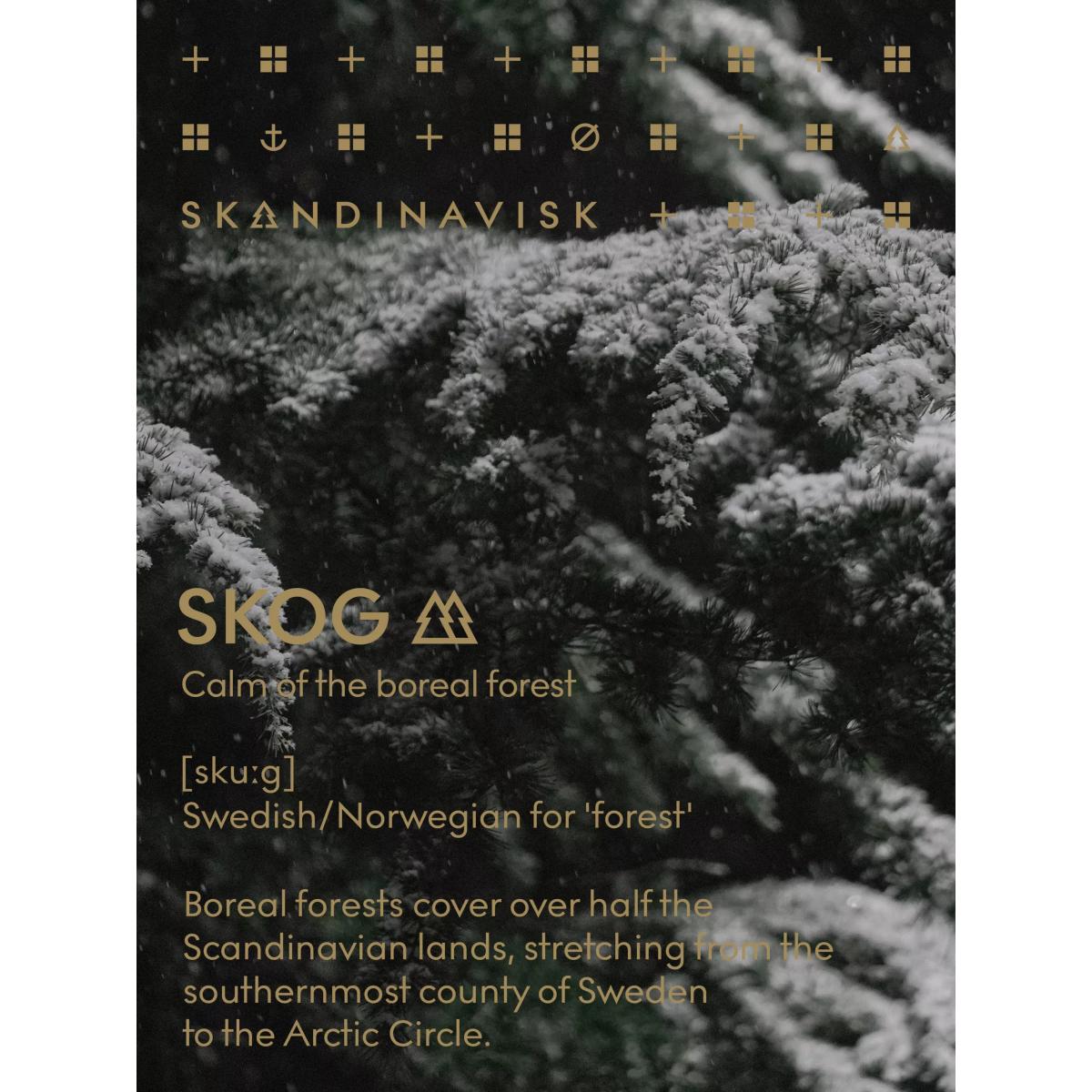 SKOG - Swedish/Norwegian for ‘forest’ Boreal forests cover over half the Scandinavian lands, stretching from the southernmost county of Sweden to the Arctic Circle. Scent notes: Pine needles and fir cones, birch sap and woodland lily of the valley. The new Home Mist creates an instant ambience in any room with just a couple of sprays. Spritz in any living space to create a fresh fragrance mood. Safe to use on fabric and other indoor surfaces without leaving stains. Perfume spray inside painted glass bottle, alcohol-free, non-hazardous and vegan.