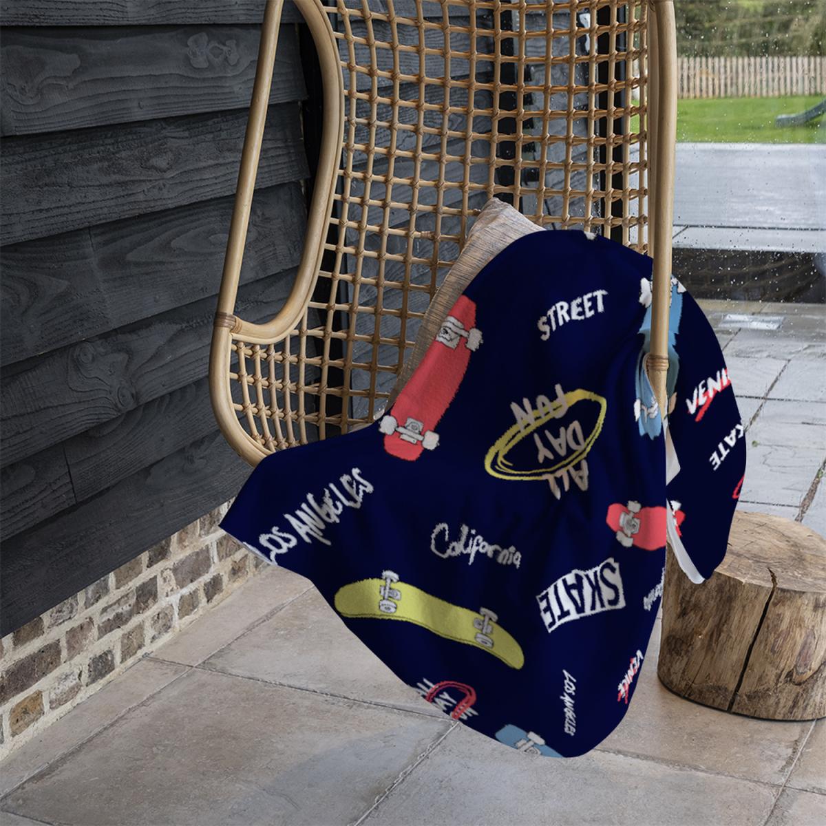 I really like the skate blanket for its bold, playful design and versatility. It works well layered over neutral sofas or bed linen to add a pop of colour and personality to a room. It’s ideal for casual, laid-back interiors or a child's room, but can also add an unexpected touch in more eclectic schemes. Practical styling tips include draping it loosely over armchairs for a cosy vibe or folding it neatly at the end of the bed for a fun accent piece. The dark colour makes it practical for everyday use, hiding stains and wear over time, while still making a style statement.