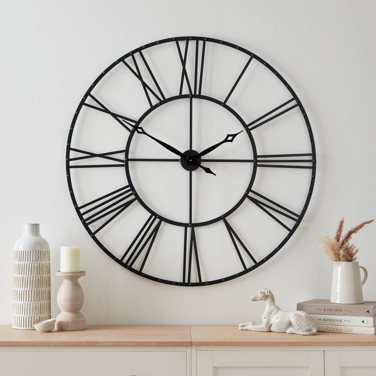 Introduce a stunning focal point to your room with this oversized skeleton clock. Featuring a metal structure, classic roman numerals and classic styled hands, this skeleton clock will bring an timeless style to your home and would suit a range of interiors.