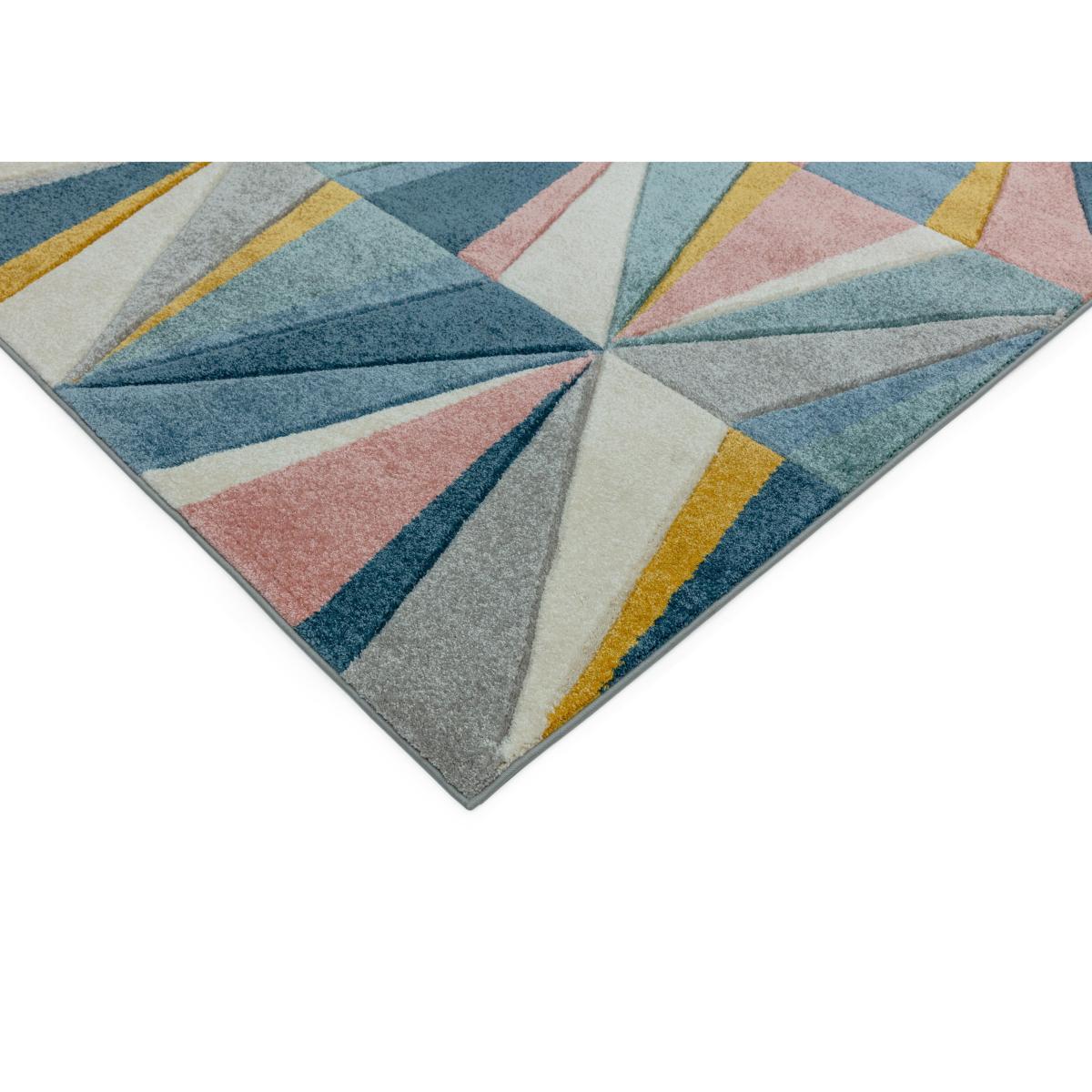 Angled slices in bold pastels colours fit together to create this wonderful diamond-patterned rug. Soft in texture and carefully hand-carved, it’s deliciously soft underfoot. Why you’ll love it. Fun geometric design. Bright, fresh, modern pastel colourway. Will add colour to any room. Dense yet soft, hand carved pile is comfy underfoot. Hardwearing, this rug suits high traffic areas. What you need to know. 100% Polypropylene. Machine-woven. Made in Turkey. Choice of three sizes. The range includes a wide choice of geometric designs. Easy to sponge-clean and care for.