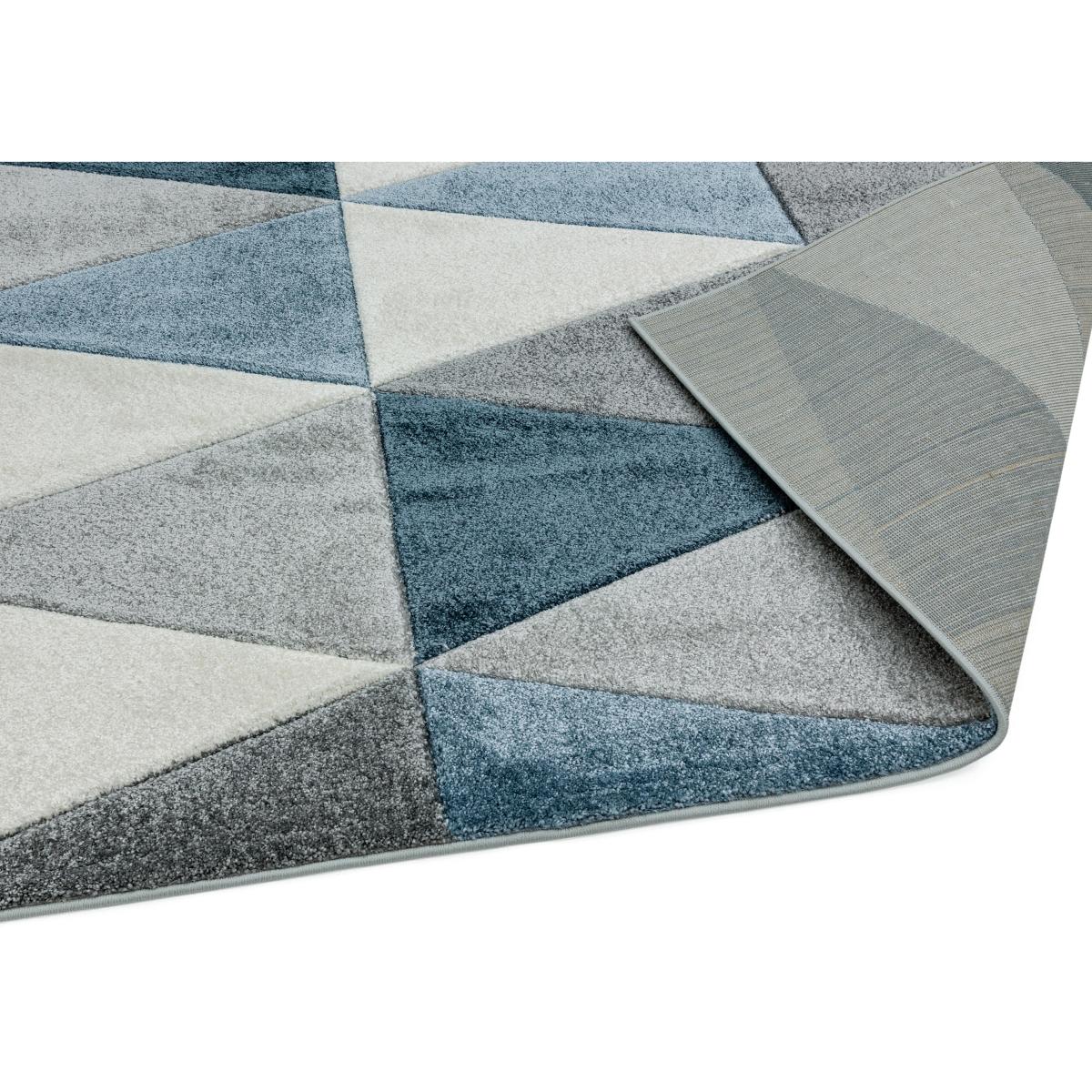 Simple and striking, this geometric rug features an arrangement of interlocking kite shapes in blues and greys. Inspired by tile flooring, it’s hand carved for softness and feels fabulous underfoot. Why you’ll love it. Fun geometric design. Bright, fresh, modern pastel colourway. Will add colour to any room. Dense yet soft, hand carved pile is comfy underfoot. Hardwearing, this rug suits high traffic areas. What you need to know. 100% Polypropylene. Machine-woven. Made in Turkey. Choice of three sizes. The range includes a wide choice of geometric designs. Easy to sponge-clean and care for.
