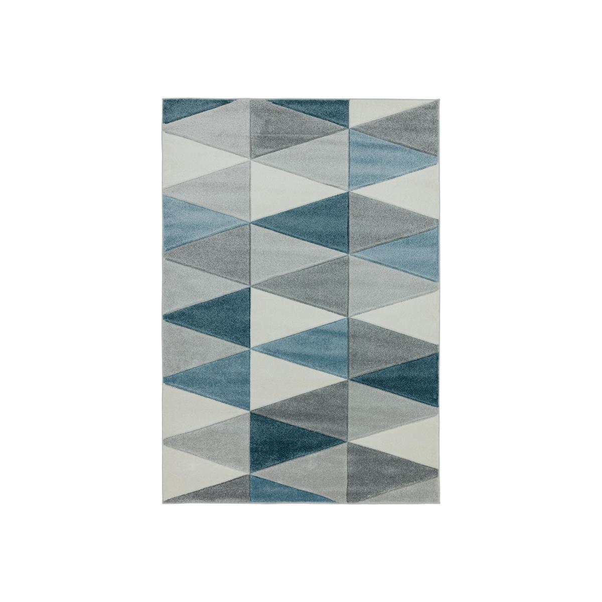 Simple and striking, this geometric rug features an arrangement of interlocking kite shapes in blues and greys. Inspired by tile flooring, it’s hand carved for softness and feels fabulous underfoot. Why you’ll love it. Fun geometric design. Bright, fresh, modern pastel colourway. Will add colour to any room. Dense yet soft, hand carved pile is comfy underfoot. Hardwearing, this rug suits high traffic areas. What you need to know. 100% Polypropylene. Machine-woven. Made in Turkey. Choice of three sizes. The range includes a wide choice of geometric designs. Easy to sponge-clean and care for.
