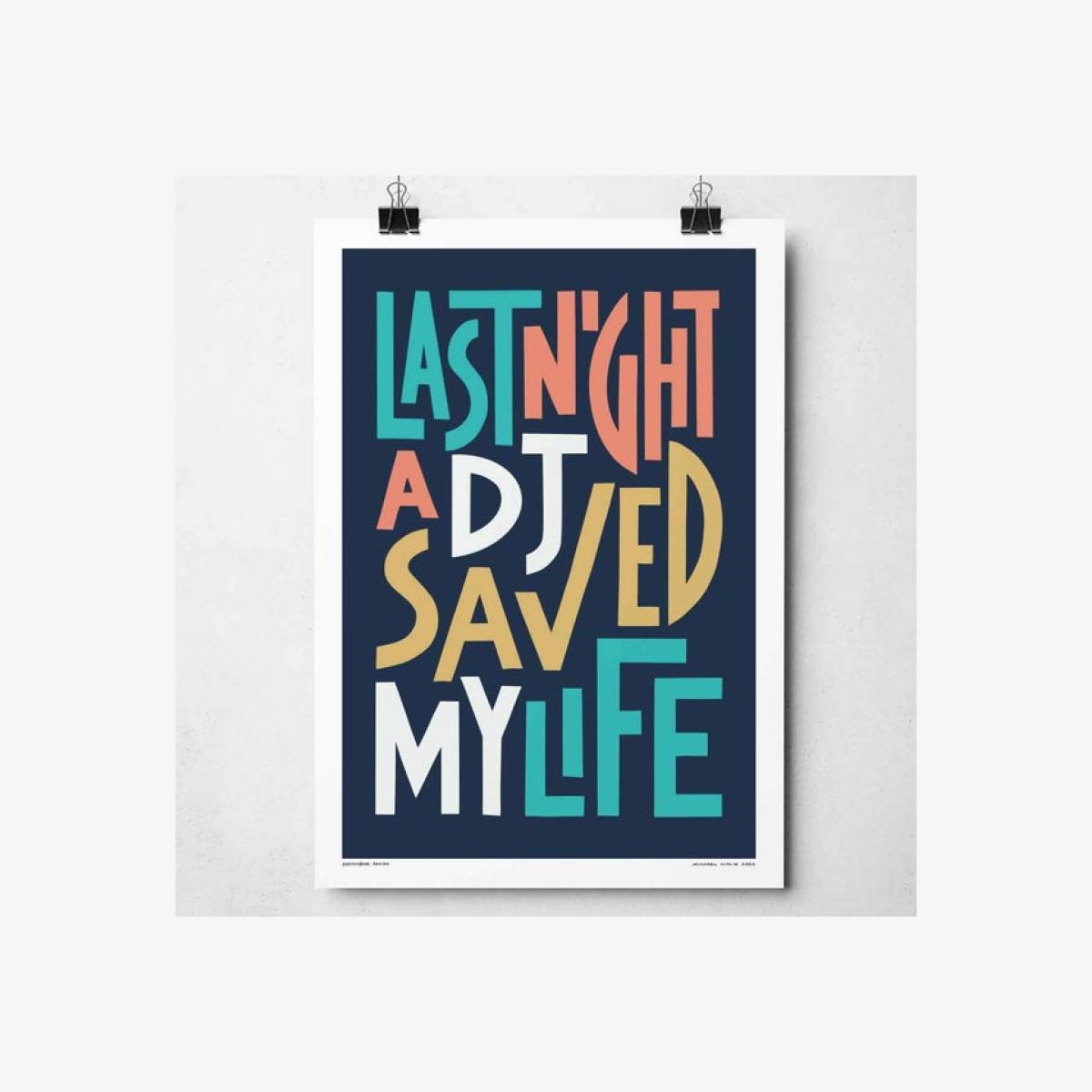 * Multicoloured typography design * 'Last Night a DJ Saved My Life' lyrics * Choice of black or white frame * Sizes A4 or A3 Make a statement on your wall with this 'Last Night a DJ Saved My Life' framed print. A perfect tribute to the famous disco classic, this print features the iconic lyrics in a stunning multicoloured typography design. It’s the ideal way to bring a sense of energy and fun to any home. You can choose a black or white frame and your ideal size from either A4 or A3. This engaging print is an absolute must-have for music lovers.