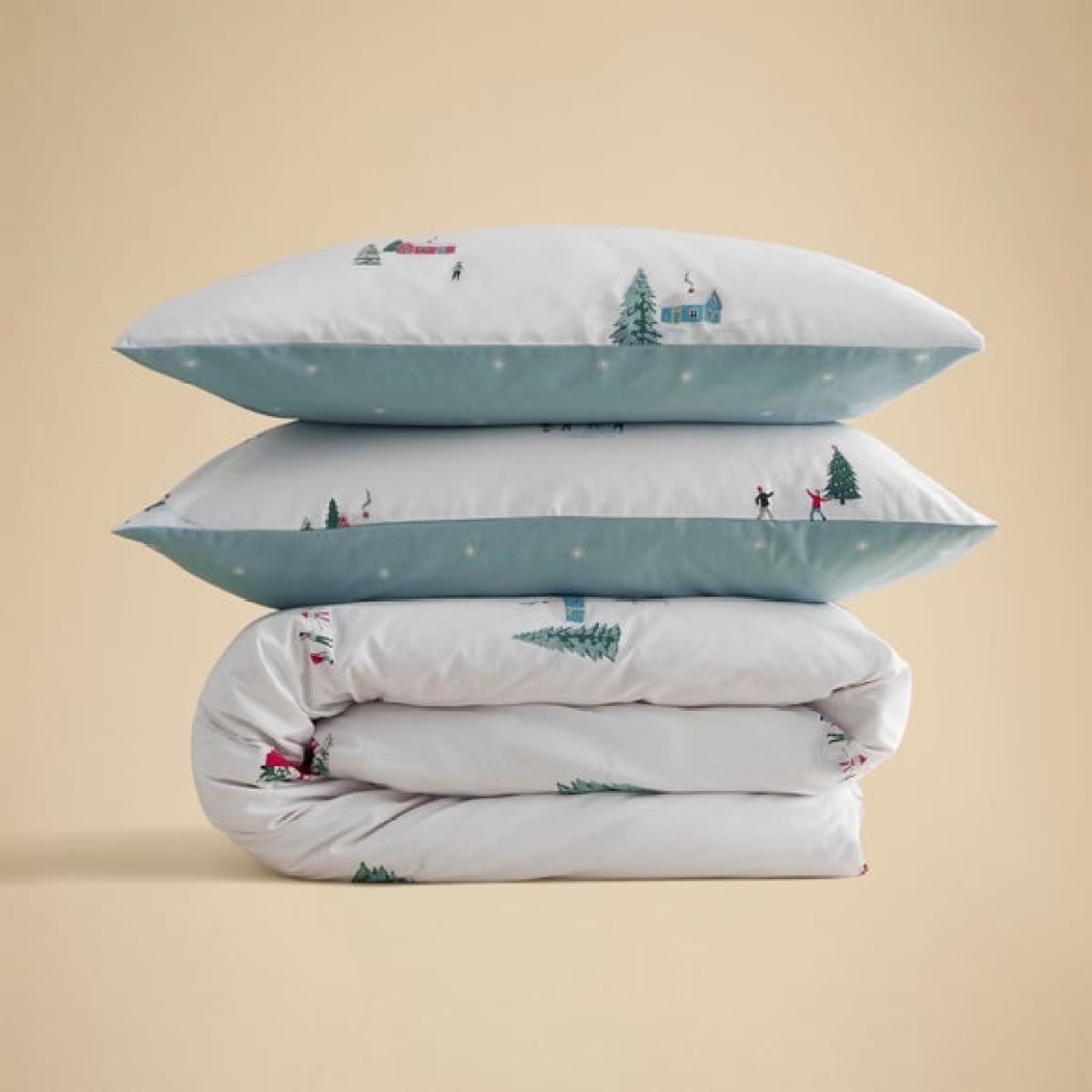 * Crafted from a durable polycotton blend * Charming ski scene design * Button closure * Machine washable * Lightweight Great for the festive season. Bring alpine charm to your bedroom with this festive bedding set, featuring a playful ski scene that's perfect for winter lovers and snow day dreamers. Printed on both sides, it's easy to flip for a fresh look, like swapping slopes without leaving your duvet. The durable and soft polycotton blend is easy to care for; meaning less time in the laundry and more time sipping hot chocolate wrapped up in your favourite duvet set. Soft, cosy and full of seasonal spirit, it's ideal for adding a wintry touch to your sleep space. Whether you're dressing the guest room or treating yourself, it's a piste-perfect pick. Time to snuggle in and let the snow fall.