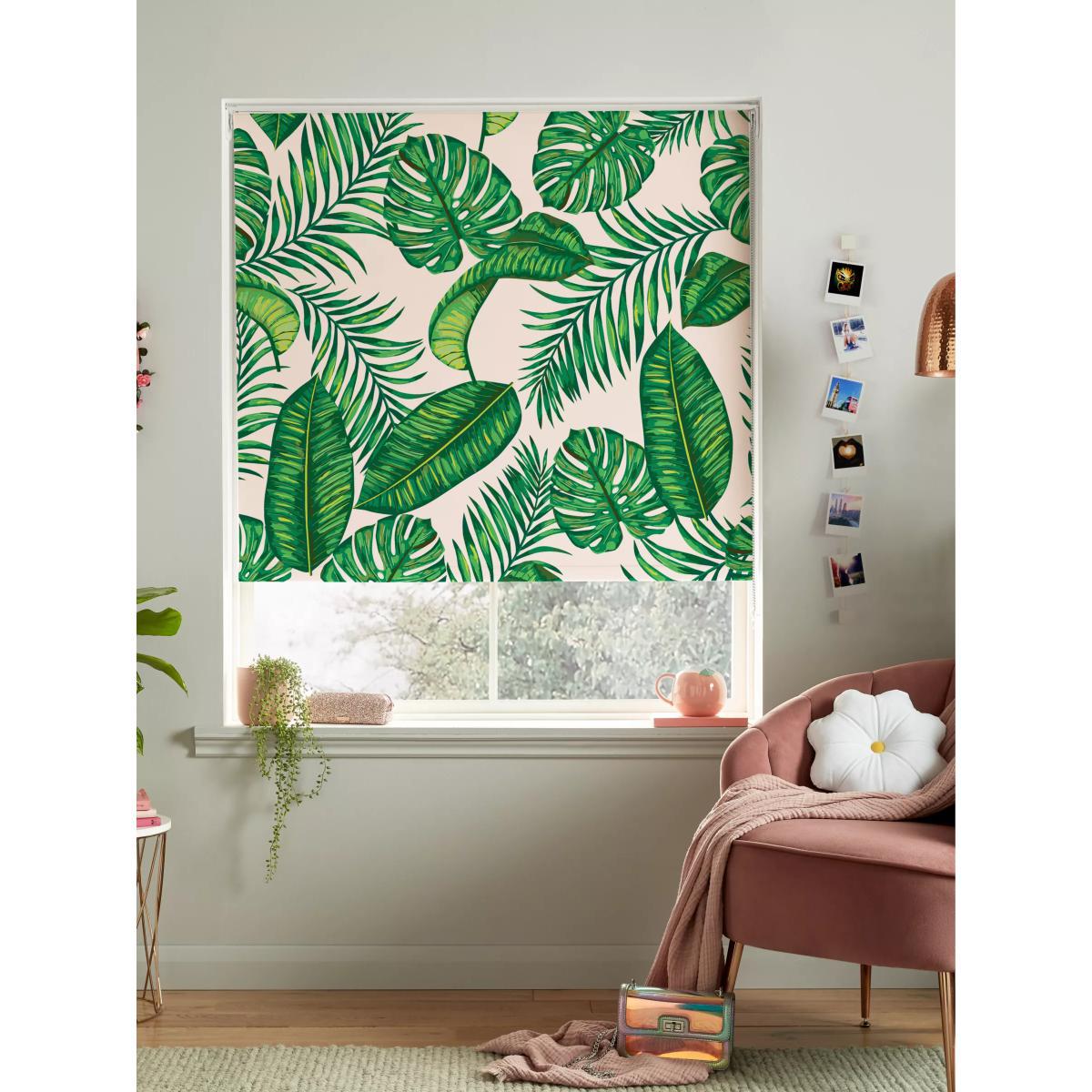 With a pretty palm leaf print Skinnydip's Dominica roller blind transports you straight to the tropics. Worth knowing... The width stated in our product specifications is the total width of the blind including mechanisms and brackets. The width of the fabric alone will be a few centimetres less than this. Safety warning Young children can be strangled by loops in pull cords, chains, tapes and inner cords that operate the product. To avoid strangulation and entanglement, keep cords out of the reach of young children - cords may become wrapped around a child's neck Move beds, cots and furniture away from window covering cords Do not tie cords together. Make sure cords do not twist and create a loop More information on child safety can be found on our Child Safety Hub