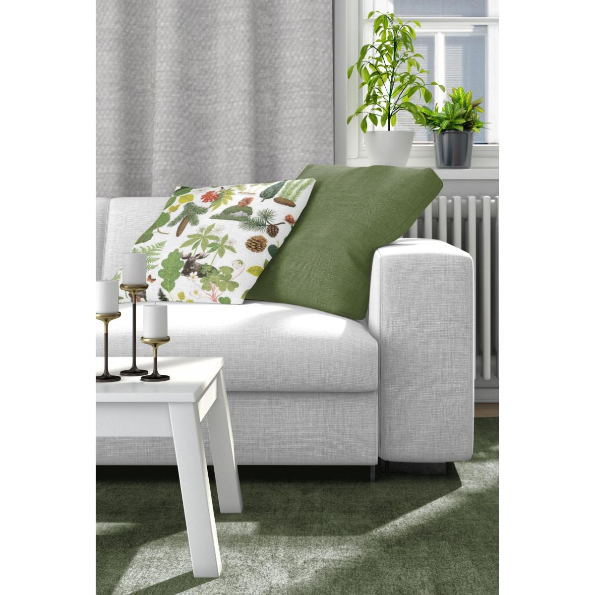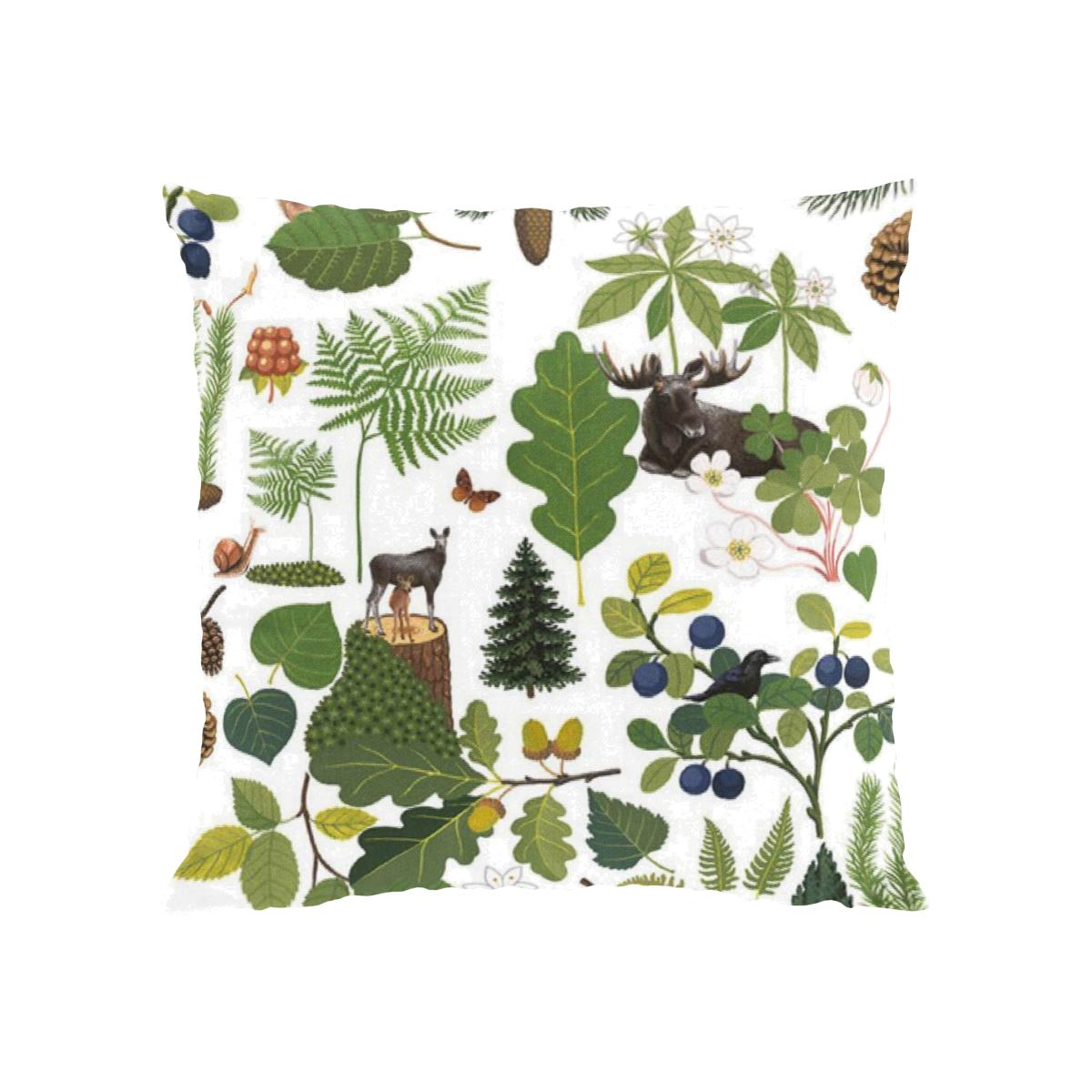 Skogsliv pillowcase 47x47 cm from Arvidsson's Textile is adorned with a pattern depicting small leaves, pinecones, berries, animals and plants. With this pillowcase you have an opportunity to invite nature into your home and create a personalised touch on the sofa, a bed or on your favourite armchair. Use this product on its own or combine it with others in the same series to create a harmonious aesthetic in your home.