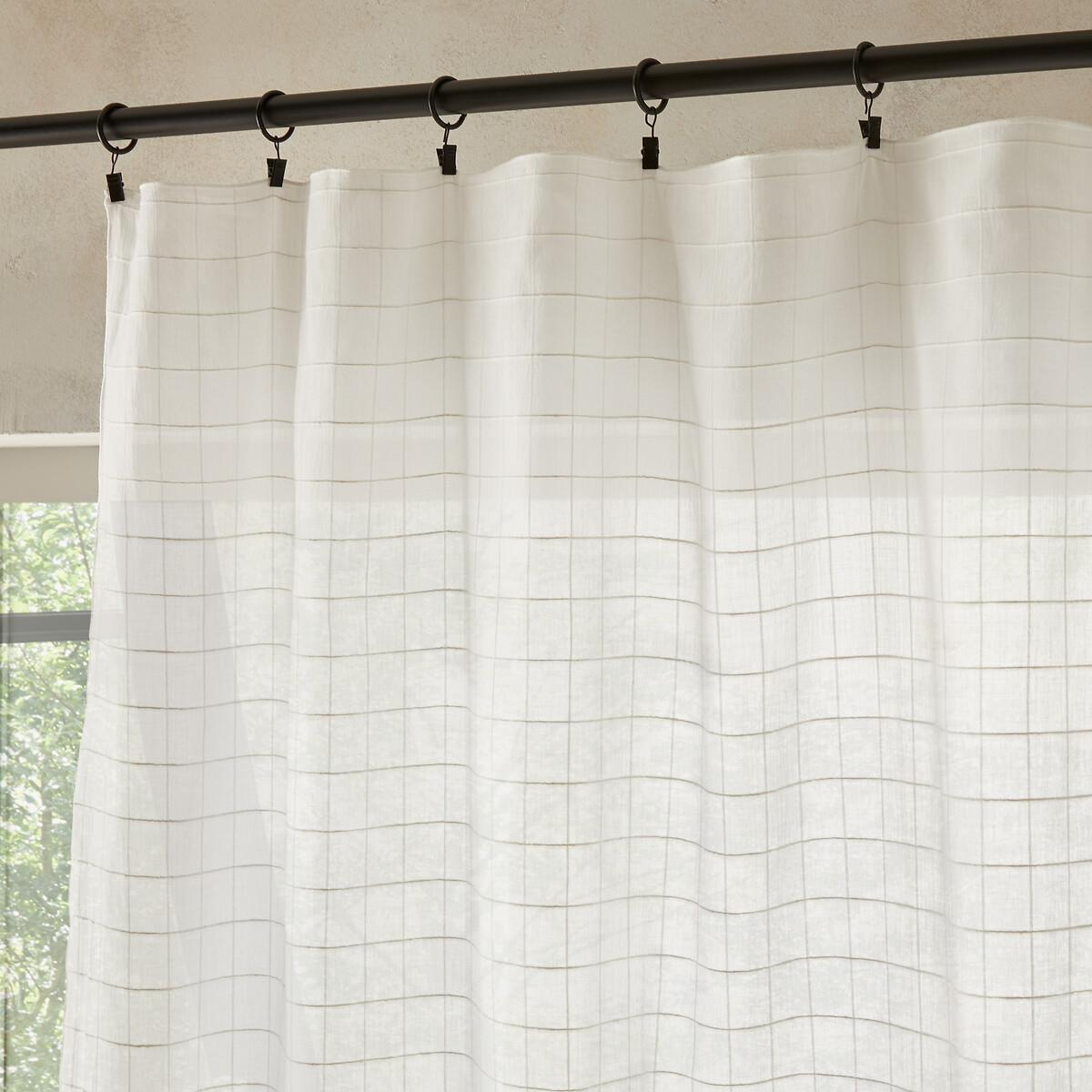 Strong yet supple and light cotton voile with a textured grid design. The Skoum sheer curtain is woven and made from cotton from organic farming. Timeless, authentic and airy, Skoum elegantly filters the light. Product Details • 100% cotton • Organic cotton • Texturded woven large square weft • Tone-on-tone satin finish around the edges • Hang using the Loch clips sold on our site. Care Advice Follow our care tips to maintain the quality of your linens • Machine washable at 40°C • Do not bleach • Do not tumble dry • Iron at average temperature • Suitable for dry cleaning. Sizes • 140 x 220cm • 140 x 260cm • 140 x 320cm • 140 x 350cm