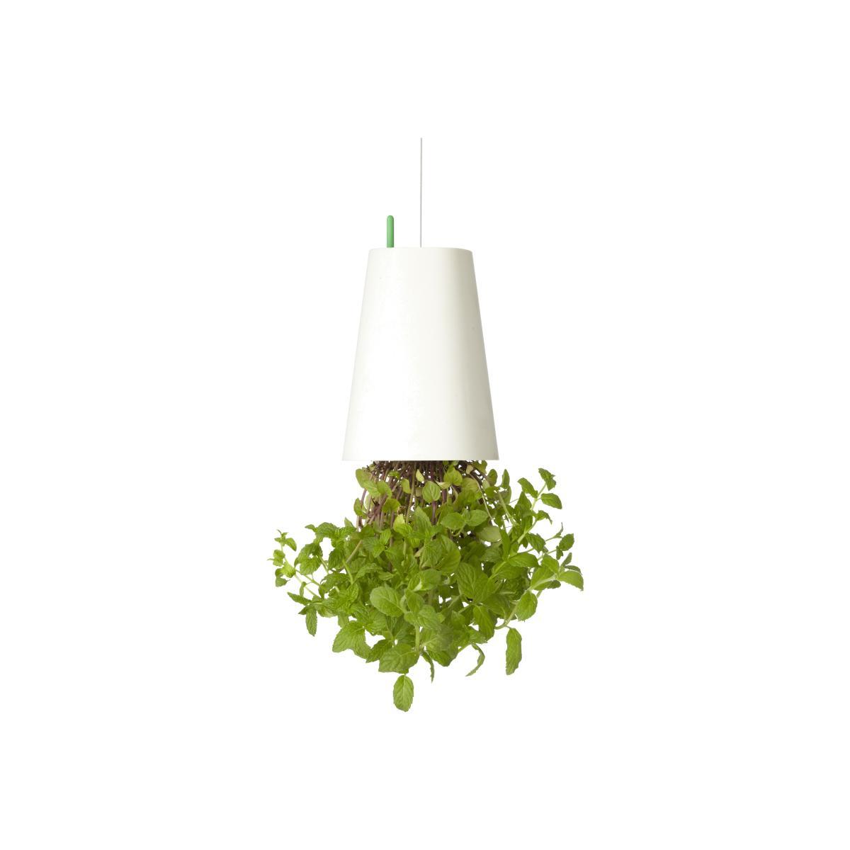 You liked them before, you will love them now! Sky upside down planters come back in a new recycled polypropylene version – eco-friendly and at good price! An outstanding spectacle. “Sky” is a new concept of hanging plants upside down. A spectacular and poetic scene of airy plants. This planter, hanging from a ceiling or on a wall, is adapted to all types of plants: indoor plants in living rooms, culinary herbs in kitchens. A plastic net holds the soil and plant. Slo-Flo irrigation system keeps the soil wet during a couple of weeks. Solo or aligned in a composition, Sky upside down planter will be an eyecatcher in any room! This planter is entirely made of polypropylene. In order to hang up the planter on a ceiling, use the “S”-like hook (supplied). In order to hang it up on a wall, use a wall mount (sold separately). Supplied with a suspension cable of 30 cm length. A longer steel cable (sold separately / L max 150 cm) will allow you to hang up plants in desired heights (which is very useful if you have high ceilings). Sky planter is available in three different sizes: Small (H 13 x Ø 9. 5 cm), Medium (H 19 x Ø 14 cm), Large (H 25 x Ø 18 cm) and in a variety of colours.