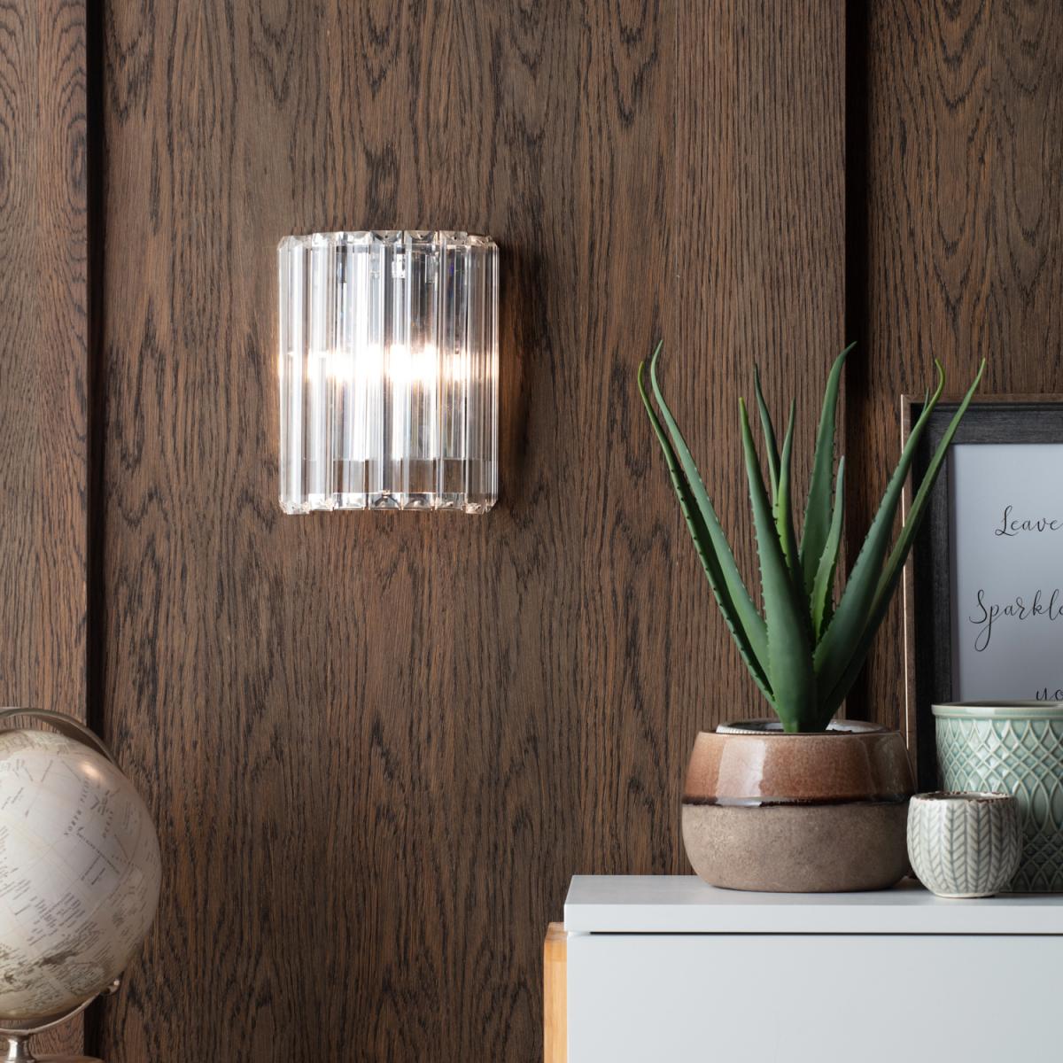 Harmoniously fuse elegance and functionality with the Skydda Bathroom Wall Light in polished Chrome. This wall lamp features a crystal effect shade which produces a gorgeous lighting effect. The IP44 rating that accompanies this bathroom wall light is water resistant and perfect for the high moisture areas of the home.