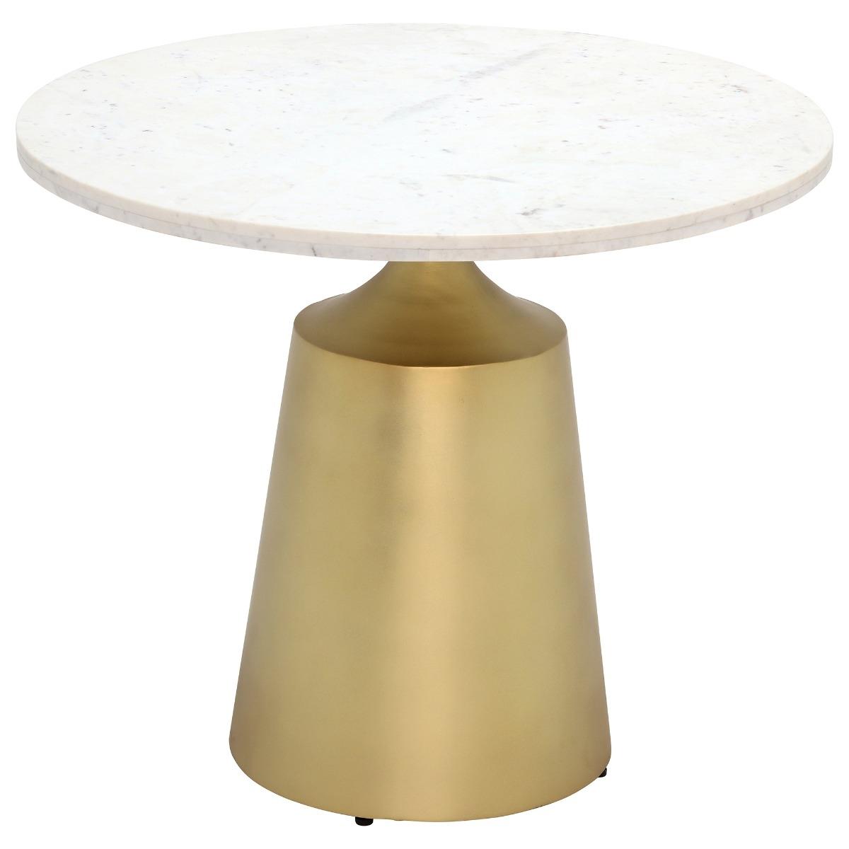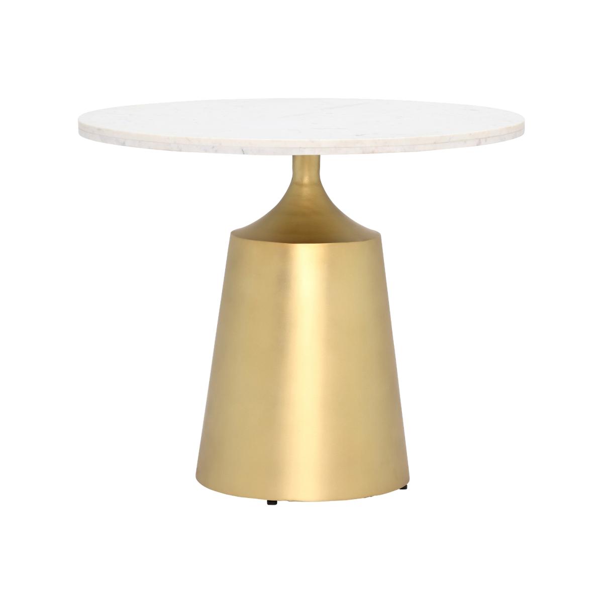 Design. A truly modern dining table that would look great in an open modern space or a more traditional setting. The Skye Cafe Table exudes luxury with its electroplated brass base and marble top, paired together for a contemporary take on industrial inspired design. To maintain this contemporary aesthetic in your dining space, we recommend pairing the Skye Cafe Table with a velvet dining chair.