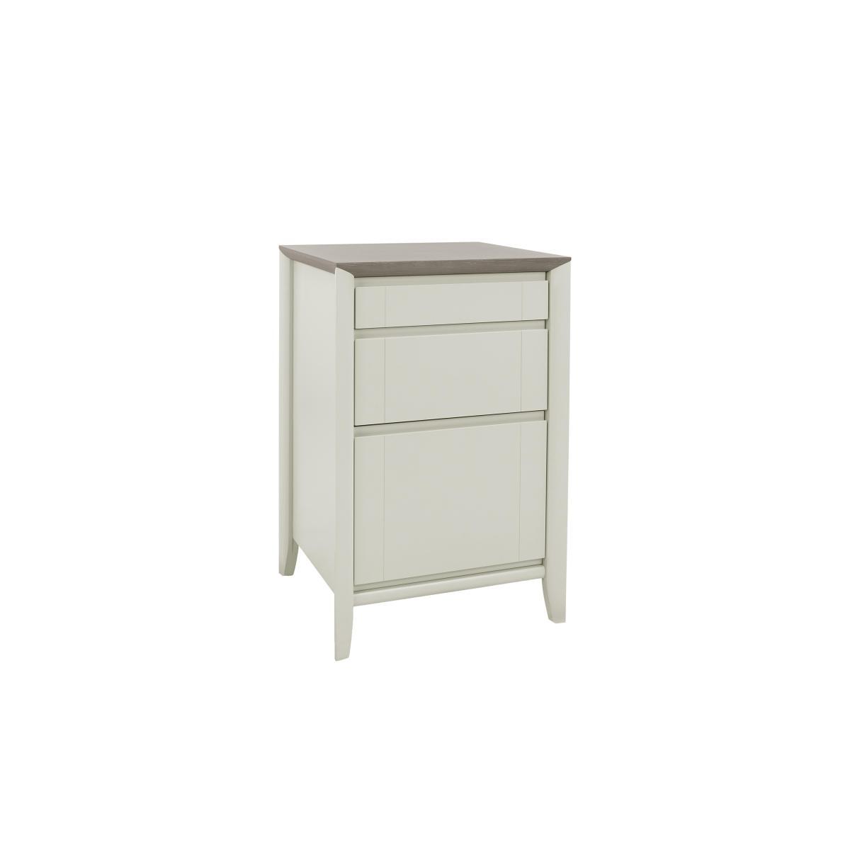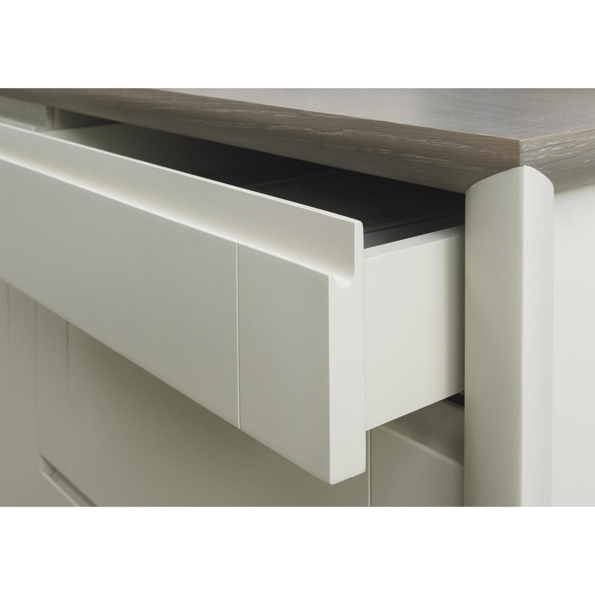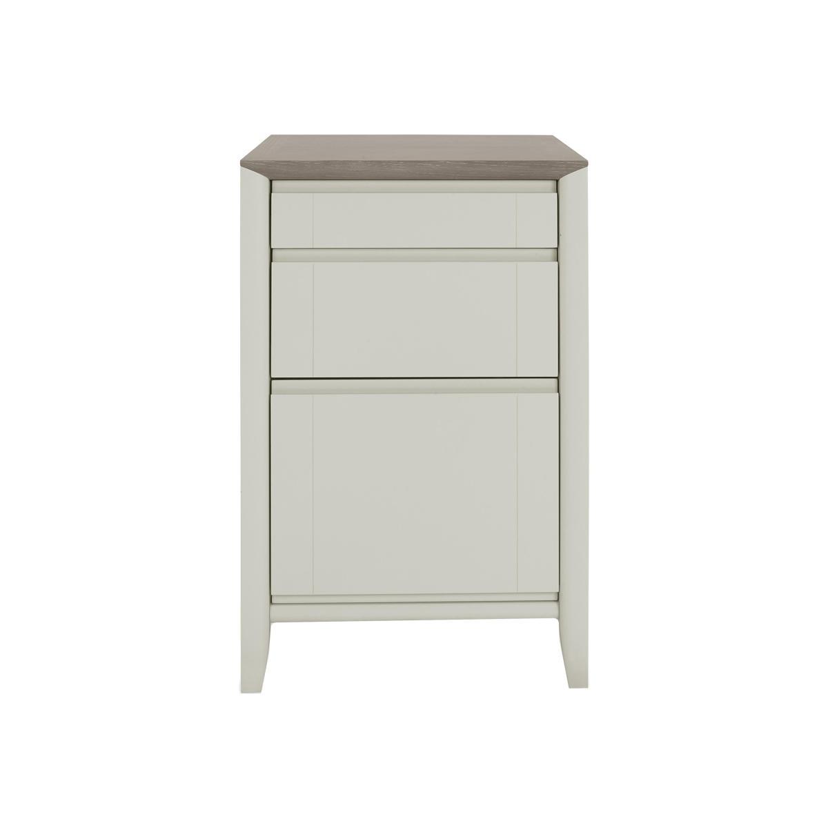 Understated style, elegant simplicity and effortless functionality: the Skye range is the contemporary range for compact spaces. Beautifully crafted from solid white oak and beech and finished with stylish grey-washed and soft grey oak veneers, every piece in this range is designed to work together across the home office, living room and dining room. Three sizes of extending dining tables, sideboards, bookcases, entertainment units, occasional tables, desks and modular storage units have been thoughtfully designed with the smaller space in mind. High-end details like decorative marquetry patterning, soft close drawers, three-way mitre joints and grooved handles make any piece you choose in this stylish range a beautiful addition to your home. Elegant, contemporary and compact design. Understated two-tone grey finish. Made from solid white oak. Say goodbye to your piles of paperwork with the beautifully designed Skye Filing Cabinet. Neatly store and organise your papers into three neat drawers, especially designed to maximise your storage. Its compact size is ideal for those in smaller spaces and keeps your home office paper-free. The drawers have a noiseless soft-close design and grooved handles for a clean, simple look. The tabletop and drawers feature decorative marquetry detailing while the three-way mitre joints showcase this cabinet’s high-quality finish. Made from solid white oak and finished with understated soft grey and grey-washed oak veneers for a contemporary effect. The Skye Filing Cabinet is part of the beautifully made and compact Skye range which boasts a wide selection of modular dining room, living room and home office furniture that you can mix and match together.