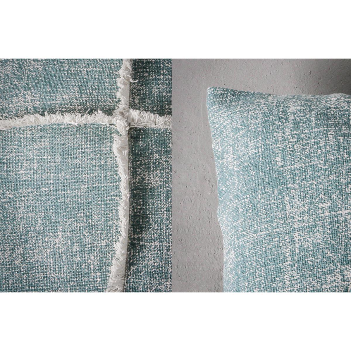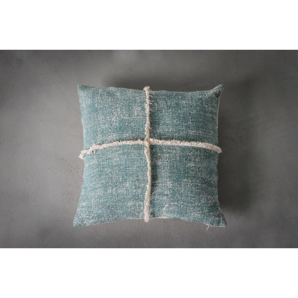 Meet the Skye cushion, a window with a beautiful view that will infuse your home with a stylish pop of colour. This eye-catching accent will help you rest your body while lifting your spirit with is its soft, feather-filled core and cover in a lively Dark Cyan shade. Two rows of fringe detailing in Pale Beige decorate it, adding a stylish contrast that is not only visual but also textural. The Skye is ideal when you're looking for an instant, easy room revamp -simply team it with a soft throw in a neutral hue and place it on a dark upholstery sofa to maximise the impact. Part of a range, the Skye is also available in various other colours.