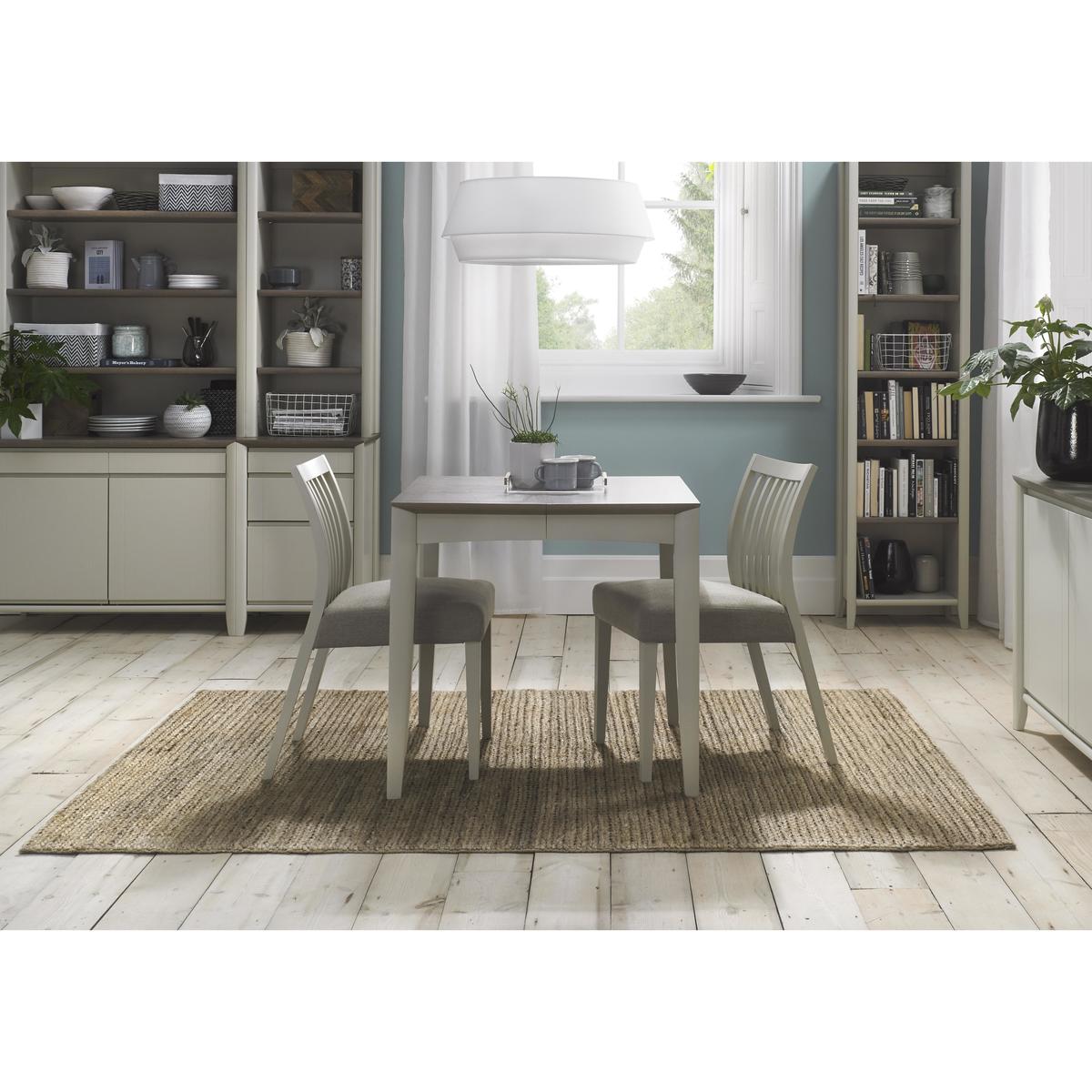 Understated style, elegant simplicity and effortless functionality: the Skye range is the contemporary range for compact spaces. Beautifully crafted from solid white oak and beech and finished with stylish grey-washed and soft grey oak veneers, every piece in this range is designed to work together across the home office, living room and dining room. Three sizes of extending dining tables, sideboards, bookcases, entertainment units, occasional tables, desks and modular storage units have been thoughtfully designed with the smaller space in mind. High-end details like decorative marquetry patterning, soft close drawers, three-way mitre joints and grooved handles make any piece you choose in this stylish range a beautiful addition to your home. Elegant, contemporary and compact design. Understated two-tone grey finish. Made from solid beech. The timelessly elegant Skye Pair of Low Slatted Chairs are a beautiful addition to any dining space. Fashioned from solid beech and finished with subtle soft grey and grey-washed oak veneers, their understated finish creates truly refined contemporary dining spaces. Graceful curved, slatted backs and elegantly tapered legs are a striking touch. Boasting comfortable sprung seats in a choice of a soft gold-toned black fabric or a stylish grey faux leather. The Skye Pair of Low Slatted Chairs is part of the wonderfully versatile, compact and beautifully contemporary Skye range, offering a wide selection of modular dining room, living room and home office furniture designed to be used together.