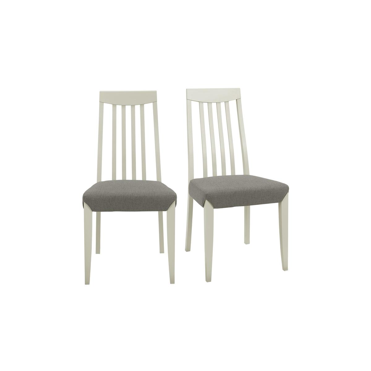 Elegant, contemporary and compact design Understated two- tone grey finish Made from solid beech The Skye Pair of Tall Slatted Chairs are sure to bring elegant contemporary style to your dining room. With their gently curved, slatted backs, gracefully tapered legs and simple, clean- lined design, they are a stylishly understated complement to dining tables of all kinds. Beautifully fashioned from solid beech and finished in a sophisticated soft grey and grey- washed oak veneer. The well- cushioned seats are wonderfully comfortable and come in a choice of gold- toned fabric or smooth grey faux leather. The Skye Pair of Tall Slatted Chairs are part of the modular, compact and versatile, contemporary Skye range. Youll find a wonderful array of home office, dining room and living room furniture designed to be paired together.
