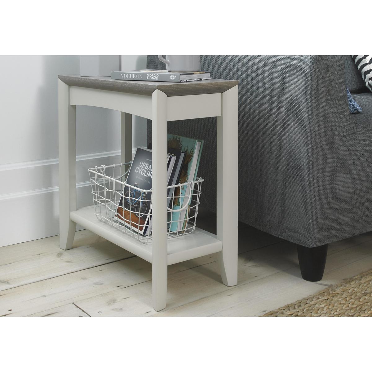 Understated style, elegant simplicity and effortless functionality: the Skye range is the contemporary range for compact spaces. Beautifully crafted from solid white oak and beech and finished with stylish grey-washed and soft grey oak veneers, every piece in this range is designed to work together across the home office, living room and dining room. Three sizes of extending dining tables, sideboards, bookcases, entertainment units, occasional tables, desks and modular storage units have been thoughtfully designed with the smaller space in mind. High-end details like decorative marquetry patterning, soft close drawers, three-way mitre joints and grooved handles make any piece you choose in this stylish range a beautiful addition to your home. Elegant, contemporary and compact design. Understated two-tone grey finish. Made from solid white oak. Complement your sofa with the beautifully designed Skye Side Table. This compact, contemporary table is the perfect perch for a cup of tea, stylish lamp or eye-catching ornament. Elegant clean lines, tapered legs and quality detailing in the form of marquetry detailing and neat three-way mitre joints gives this table an effortlessly modern silhouette. Made from solid white oak and finished with stylishly understated grey-washed and soft grey oak veneers. You’ll find a large shelf underneath that’s perfect for stacking books, magazine and other items. The Skye Side Table is part of the compact, versatile and well-crafted Skye range which offers a fantastic range of elegant, contemporary pieces you can mix-and-match for the modern home.