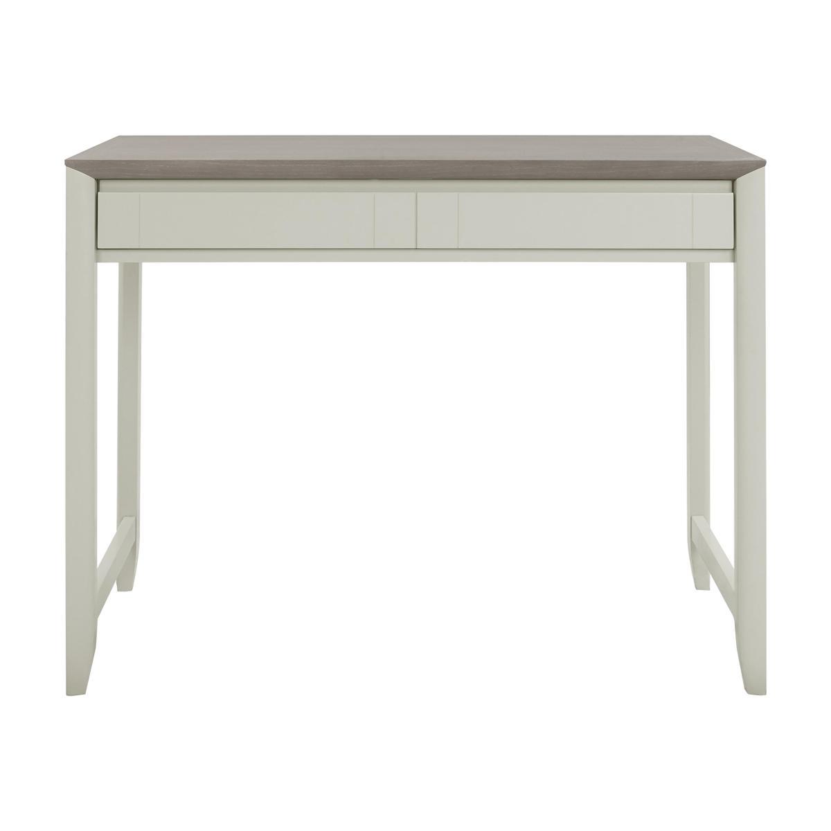 Understated style, elegant simplicity and effortless functionality: the Skye range is the contemporary range for compact spaces. Beautifully crafted from solid white oak and beech and finished with stylish grey-washed and soft grey oak veneers, every piece in this range is designed to work together across the home office, living room and dining room. Three sizes of extending dining tables, sideboards, bookcases, entertainment units, occasional tables, desks and modular storage units have been thoughtfully designed with the smaller space in mind. High-end details like decorative marquetry patterning, soft close drawers, three-way mitre joints and grooved handles make any piece you choose in this stylish range a beautiful addition to your home. Elegant, contemporary and compact design. Understated two-tone grey finish. Made from solid white oak. A home office should be functional and beautiful – just like the Skye Standard Desk. It combines easy practicality with elegant features such as clean lines, tapered legs and decorative marquetry detailing on the tabletop and drawer. Thoughtfully designed with grooved handles and a large tabletop which gives you a fantastic amount of space to work with in a compact footprint. One roomy soft-close drawer gives you ample space for stationery and paper, making it easy to keep your workspace clutter-free. Made from solid white oak and finished with a soft grey and washed-grey oak veneers. Neat three-way mitre joints give this desk a balance and flow that perfectly complements contemporary homes. The Skye Standard Desk is part of the modular and contemporary Skye range. Boasting incredible versatility with a wide selection of beautifully made living room, dining room and home office furniture that can be mix and matched together. WARNING!. Furniture can tip over unexpectedly and cause injury. This item shall be fixed to a wall using the anti-tip kit provided with the furniture. Be sure to use the correct wall fixings suitable for the walls in your home.