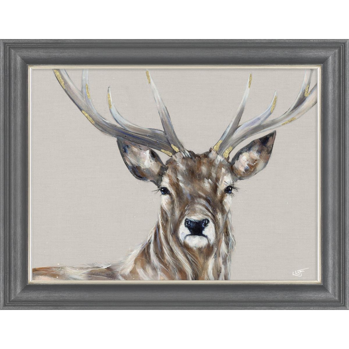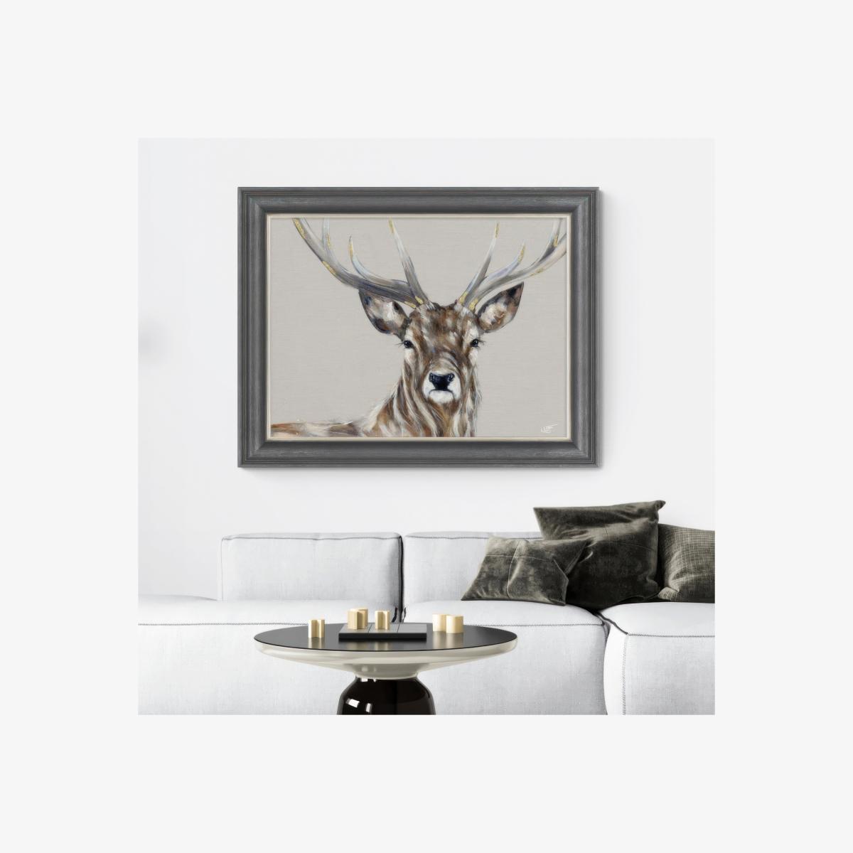 Abstract stag wall art featuring grey frame. Bring a scottish touch into your home with the Skye Stag wall art. Featuring the majestic scottish stag, neutral tones and metallic highlights. Quirky and unique in design, this wall art will add personality and style to any room. Abstract stag wall art featuring grey frame. Bring a scottish touch into your home with the Skye Stag wall art. Featuring the majestic scottish stag, neutral tones and metallic highlights. Quirky and unique in design, this wall art will add personality and style to any room.