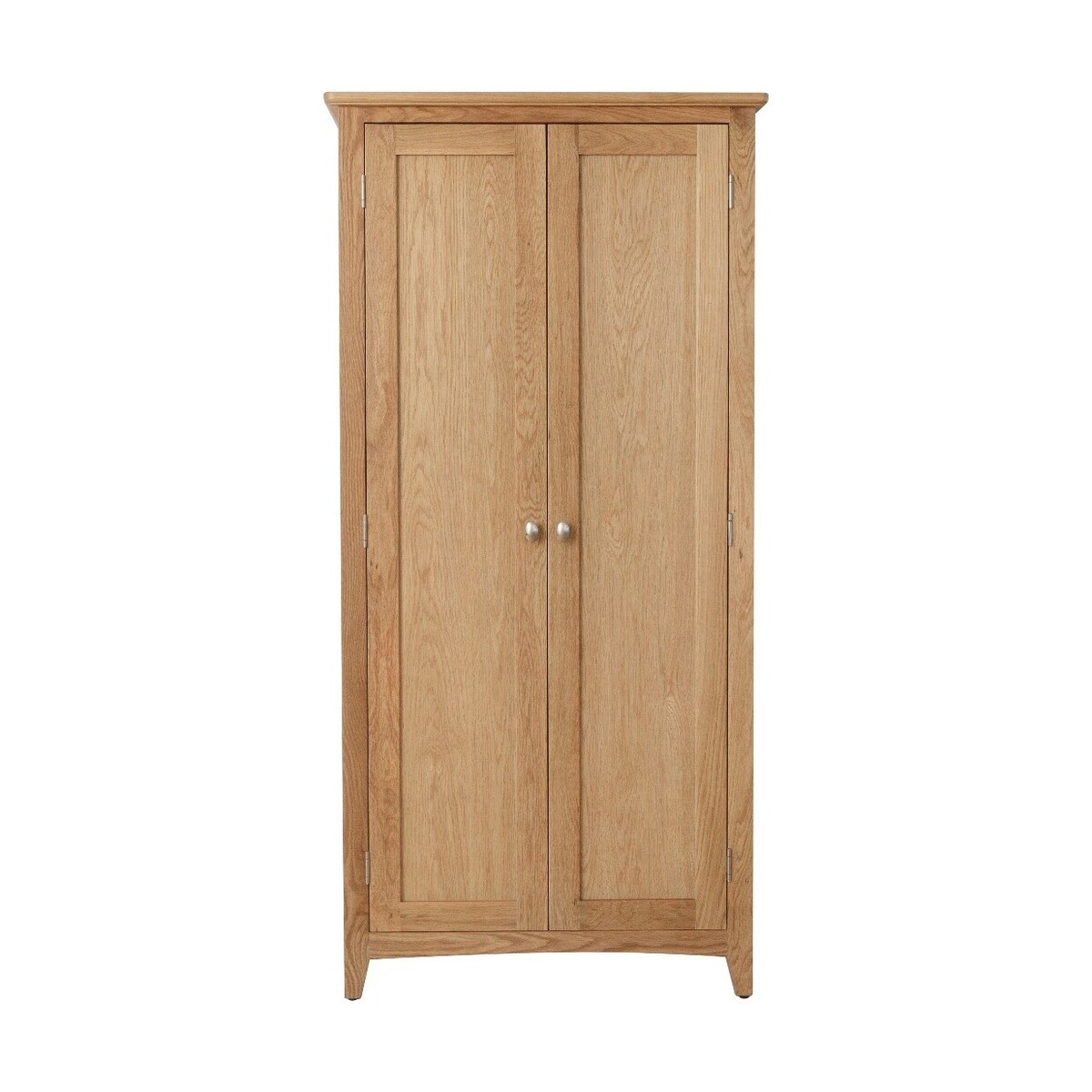 The Skylar full hanging wardrobe is an elegant and useful addition to your bedroom. It was designed and built with quality, durability and function in mind, and features a natural light oak finish that brings out the grain in the wood. A strong solid wood frame that guarantees quality and durability. Elegant light oak finish that adds a splash of colour to your room. Offers full hanging space. Dense solid oak top with smooth, rounded corners and bevel detailing. 2 doors with antique brushed metal handles, fashioned into oval knobs. Hardwood hanging rail. Clean internal finish. Short, solid wood tapered legs that provide maximum stability and support. Look out for more items from this collection.