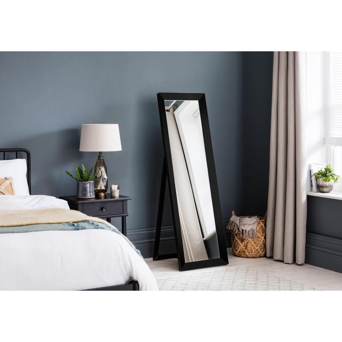 I love this stand-alone mirror because its sleek black frame adds a modern, minimal edge to a variety of interiors. It works particularly well in monochromatic and contemporary spaces, but its clean design makes it versatile enough for industrial or even luxe schemes when paired with statement accessories. Practical styling tips include positioning it near a dressing area or in a corner where it can reflect natural light, amplifying space and brightness. Its lean, upright stance also makes it suitable as a focal point in bedrooms or walk-in wardrobes, offering both functionality and style with minimal visual clutter.