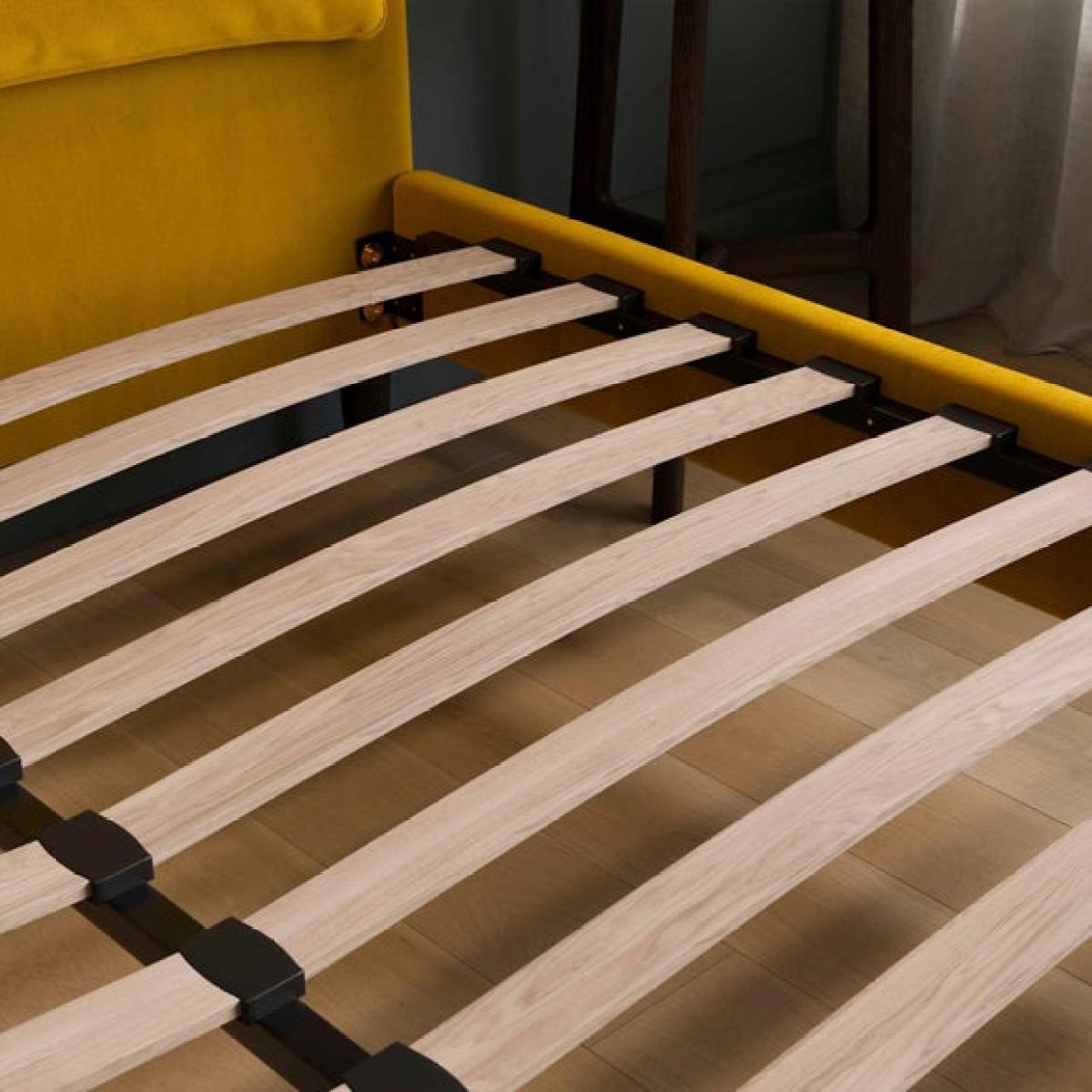 I love the Skylar Velvet Pillow Back Bed Frame for its contemporary yet cosy vibe, making it a versatile choice for various interiors. Its bold mustard colour works particularly well in modern, eclectic, or retro-inspired spaces, adding a pop of colour without overpowering the room. The plush velvet finish adds a touch of luxury, so it’s great for creating a statement piece in a minimalist scheme or elevating a mid-century look. For styling tips, pair it with textured linens and layered throws to accentuate its comfort and elegance. It works beautifully when surrounded by contrasting soft furnishings or muted tones, helping it stand out while maintaining a sophisticated feel.