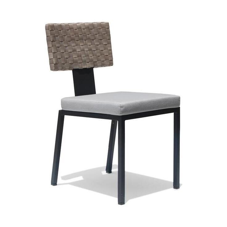 Windsor Dining Chair. Windsor Centre Seat. With a carbon finish base and silver walnut weave back. With panama cloud colour cushion.