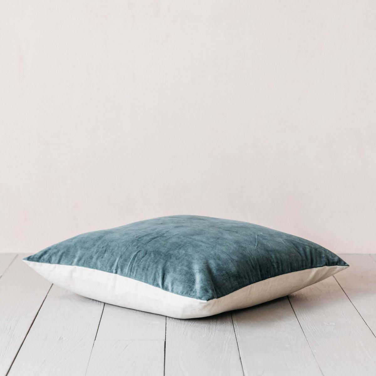 A collection of sumptuous velvet cushions in a wide range of colours to suit every interior style. Finished with natural linen backs, this collection of large luxurious cushions are great for your sofa, armchair or bed.