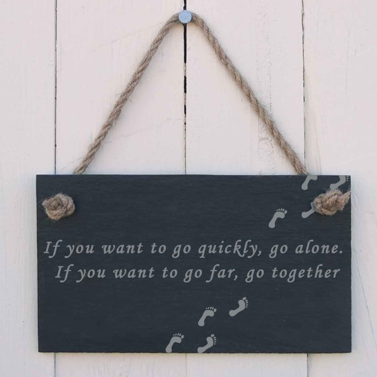 This beautiful hanging sign gift is handcrafted in our workshop in North Wales. Slate hanging sign with the message laser etched onto the slate. The hanging signs are made from a 4mm hand riven charcoal grey slate and hung with jute rope. This will make a wonderful gift for everyone.