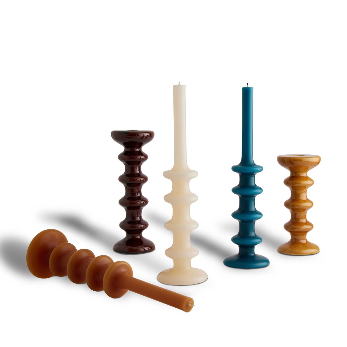 The iconic undulating form of the Slave candlesticks are now available in a 100% wax version. The wax becomes a candlestick, and the candlestick becomes a candle! There's more than one option, as you can use it to style a table or shelf, simply admire it, or burn it. The voluptuous design is both modern and elegant. Combine the various colours and sizes, then let the magic get to work… We recommend placing the candle on a base or dish that can collect any residual wax.