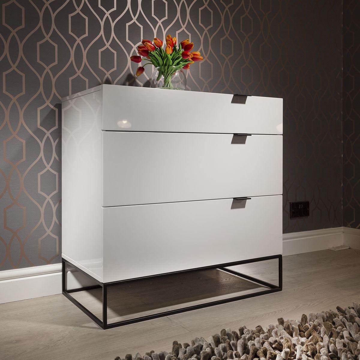 Beautiful Dresser with Black Steel Base and 3 high gloss white drawers. EXTREMELY HIGH QUALITY. Features large soft closing gloss drawers. W80cm D45cm H80cm Modern Design Premium Quality Furniture