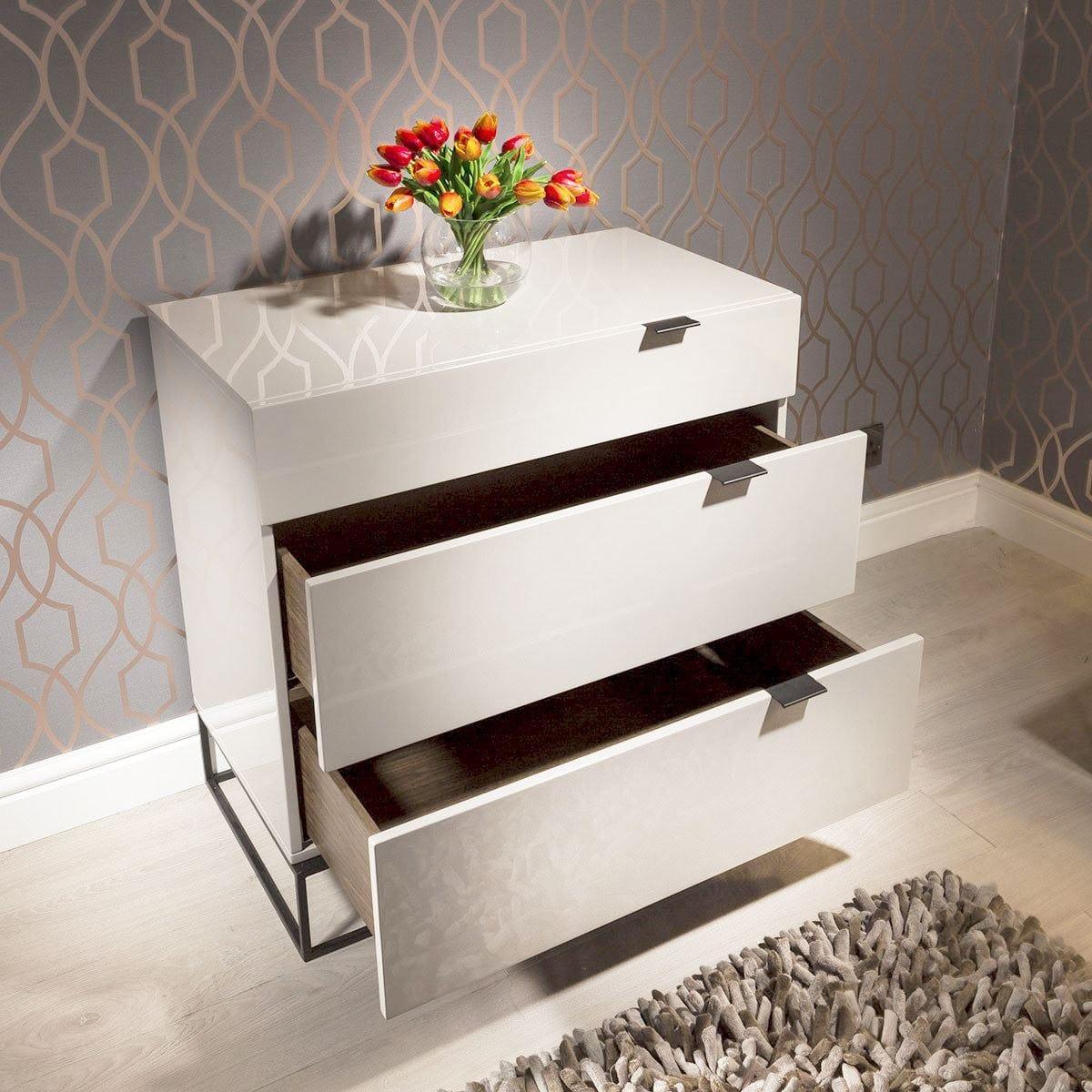 Sleek Chest of Drawers / Cabinet / Dresser 3 Drawers White Gloss 1406