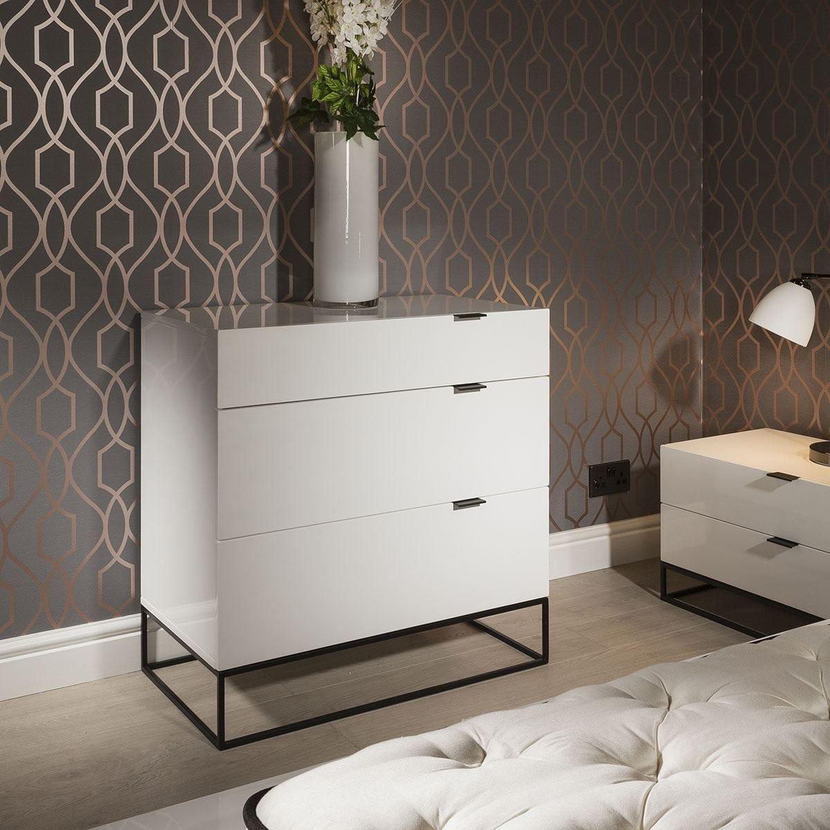 I love this dresser’s sleek, modern look thanks to its white gloss finish and minimalist design, making it a versatile piece for contemporary interiors. It works particularly well in bedrooms with neutral or monochrome themes, but can also add a fresh contrast in more eclectic spaces. Practical styling tips include pairing it with metallic accessories or a simple mirror to enhance its clean lines. Its compact size and three drawers make it ideal for bedroom storage, while the gloss surface adds a bright, airy feel to the room. To keep it looking its best, avoid placing it in overly humid areas and consider soft lighting to highlight its reflective finish.