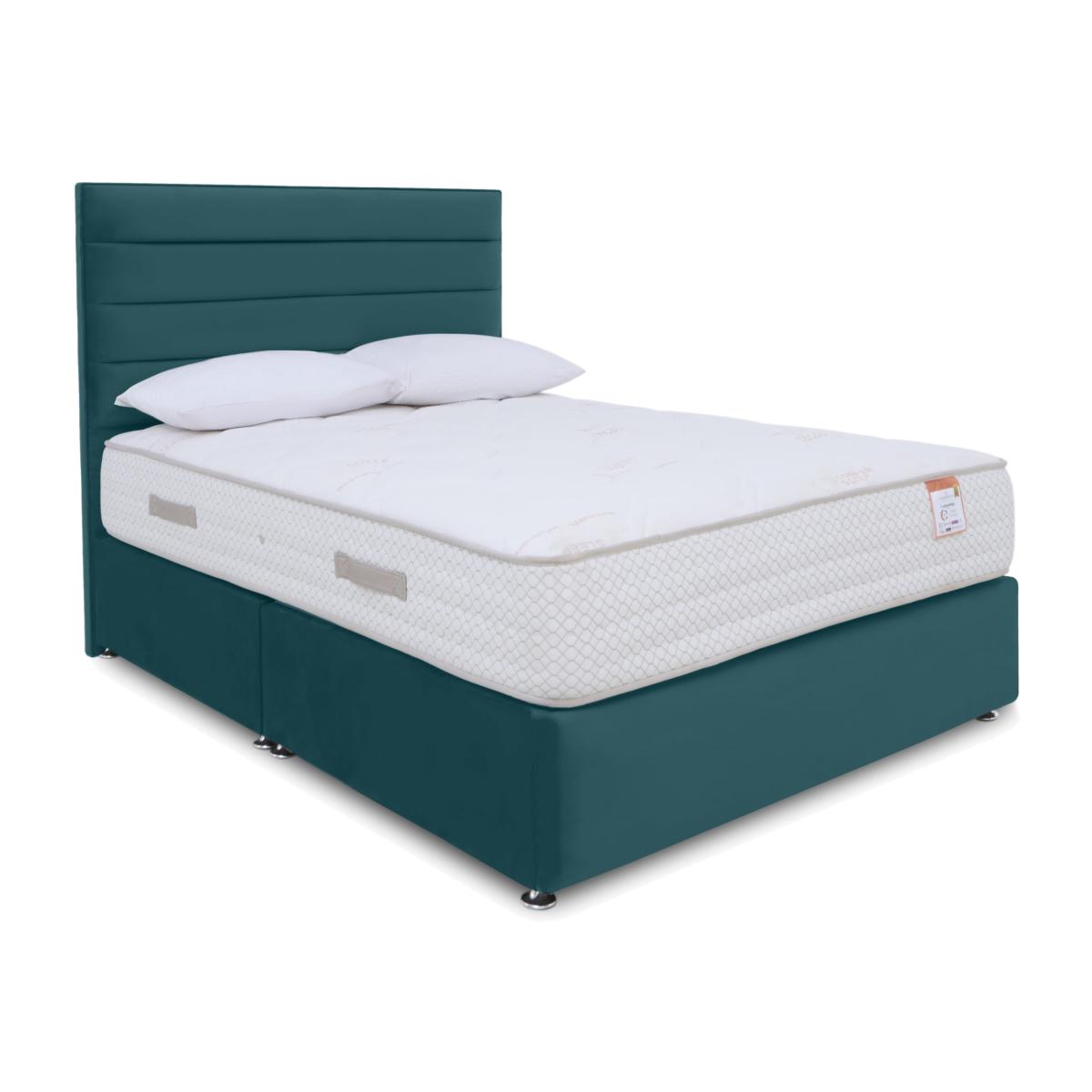 Enjoy advanced mattress comfort with innovative Copper Sleep technology for sleep like never before. As well as AdvantEdge® pocket spring systems which provides total body support across the entire sleep surface, the mattresses in our Sleep Story Copper 2000 range have copper-infused memory foam for cooler and fresher sleep, optimised support and spinal alignment, and even reduced joint swelling and inflammation. The collection also offers a wide choice of beautifully upholstered divan sets with optional drawer or ottoman storage including an electric-powered ottoman divan set. Handcrafted by Highgrove, the great-value Sleep Story Copper 2000 bed and mattress collection is only available at Furniture Village. This innovative divan set includes a copper-infused memory foam mattress with 2000 pocket springs in king size and a beautifully upholstered divan base with optional storage drawers. Why you'll love it The mattress in this divan set features Copper Sleep technology. Sleep innovation at a great-value price. The AdvantEdge® pocket spring system has 2000 springs in king size. Promises total body support across the entire sleep surface and prevents roll together. Unique copper-infused memory foam is activated by body weight and movement. Optimises hip and shoulder support and improves spinal alignment. Helps draw heat away from the body for cooler and more comfortable sleep. Designed to help relieve sore and swollen joints and reduce inflammation. Copper is also anti-bacterial and anti-microbial for cleaner and healthier sleep. Luxuriously soft stretch-fabric cover even has copper woven in. Hypoallergenic. Divan set includes a platform-top base with optional storage drawers. Available in a wide selection of stylish upholstery fabrics. Made in the UK by Highgrove and exclusive to Furniture Village. This divan set is part of Sleep Story Copper 2000 range. Shop the Sleep Sleep Story Copper 2000 range for mattresses, divan sets, electric ottoman beds and more. What you need to know Headboard is an optional extra. Mattress type: Pocket spring. Depth: 30 cm. Weight:Small single 22.5 kg, single 27 kg, small double 36 kg, double 40.5 kg, king 45 kg and super king 54.6 kg. Firmness: Medium. Springs: 2000 pocket springs in king size. Pillow top: No. Fillings: Memory foam. Cover: Stretch cover woven with copper. Requires turning: No. Base type: Platform top with optional storage drawers. Sizes: Small single, single, small double, double, king and super king. Mattress care:Air for 4 hours before using to remove any odour. Indentations caused by settlement of fillings or body weight are normal and are not considered defects. If used on a slatted bed frame, the space between slats must be no wider than 7.5 cm. Spaces wider than this may cause excess dipping of the mattress and invalidate the guarantee. Always use a mattress protector. Rotate regularly. Divan base care: Clean upholstery weekly using a soft brush or vacuum with the curtain attachment. Professional cleaning advised for oil- and grease-based stains. Ordering a small double, double, king or super king size? Your divan base will be supplied in two halves for easier access.