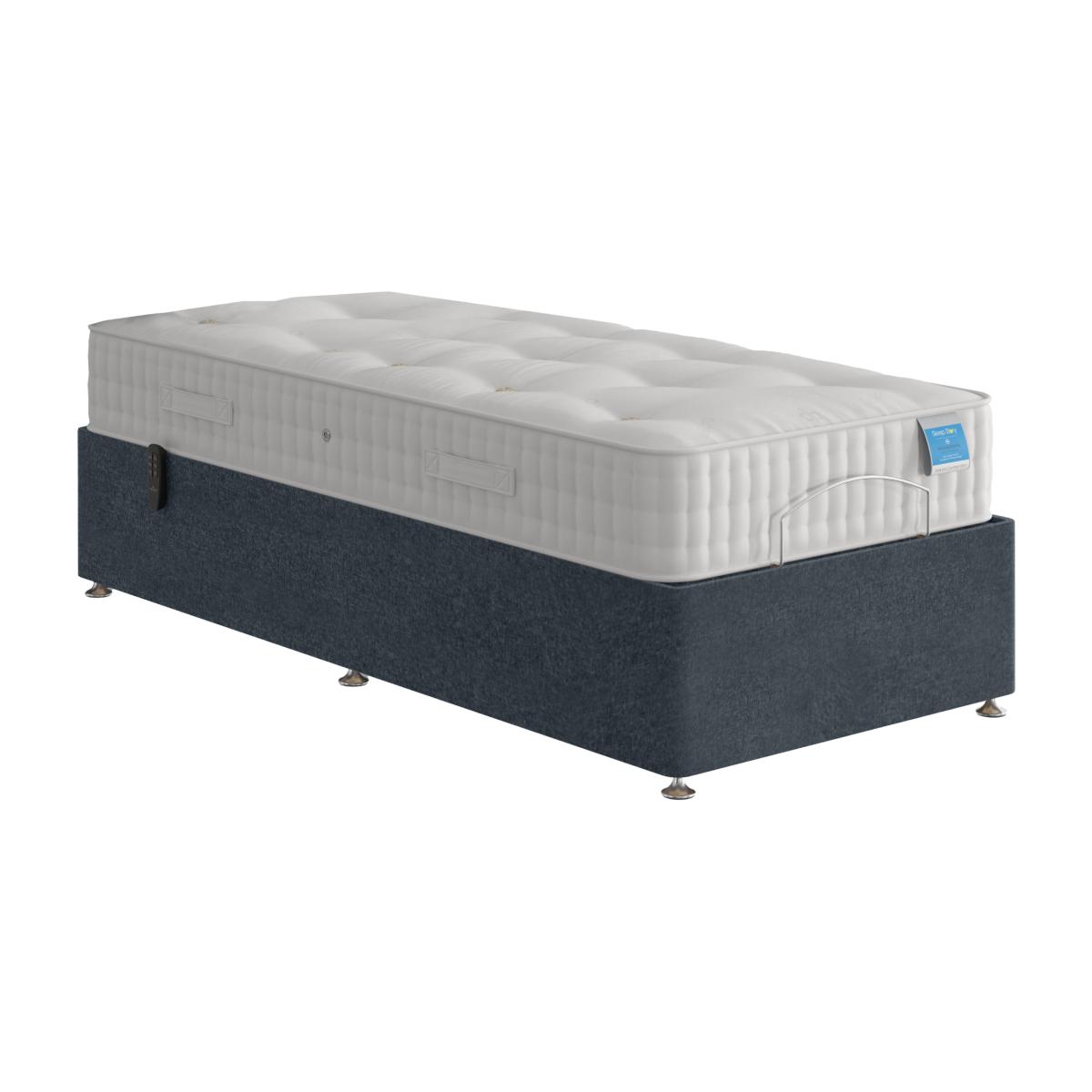 Make life more comfortable with this adjustable divan bed base from Sleep Story. As well as helping you get in and out of bed, it makes finding your perfect sleeping position so easy. Why you'll love it Personalise your comfort with this 5-part adjustable divan base. This double size adjustable base makes it easier to get in and out of bed. Promotes healthy posture during sleep. Enjoy the comfiest seated position to read or watch TV. Wireless handheld remote control makes adjusting this base so simple. With optional storage drawers. Slatted wood base provides excellent mattress support. Choose from a huge range of beautiful upholstery fabrics and colours. Made in the UK. Only at Furniture Village. This adjustable divan base is part of our Sleep Story bed range. What you need to know Mattress sold separately. Please check the suitability of any mattress you are considering for this adjustable base. Do not sit on this adjustable bed with the foot end in a raised position. Clean regularly using a soft brush or vacuum with the curtain attachment. Deal with any spills promptly. Professional cleaning advised for oil- and grease-based stains. Some fabrics can show wear on areas of more use or in direct sunlight.