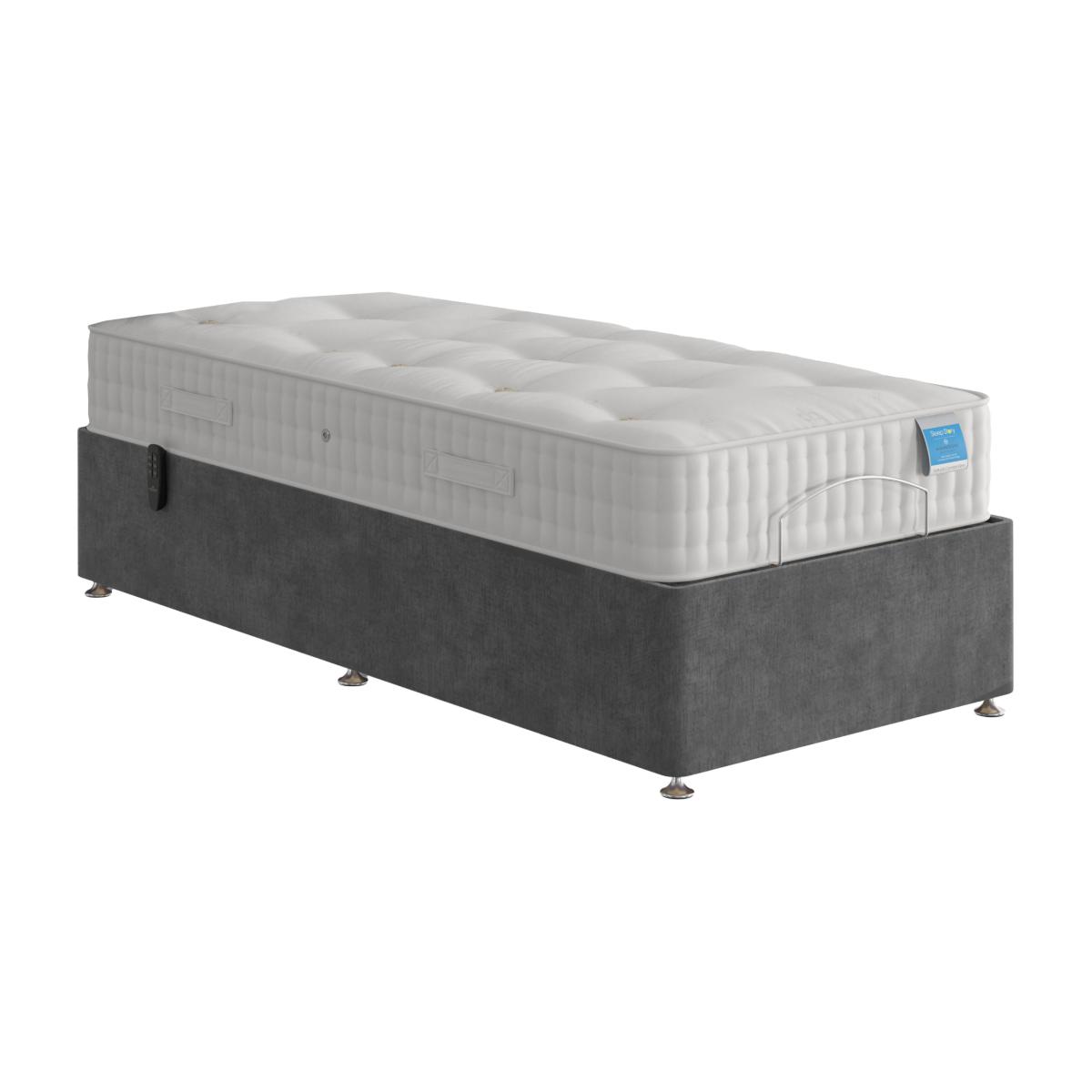 Make life more comfortable with this adjustable divan bed base from Sleep Story. As well as helping you get in and out of bed, it makes finding your perfect sleeping position so easy. Why you'll love it Personalise your comfort with this 5-part adjustable divan base. This double size adjustable base makes it easier to get in and out of bed. Promotes healthy posture during sleep. Enjoy the comfiest seated position to read or watch TV. Wireless handheld remote control makes adjusting this base so simple. With optional storage drawers. Slatted wood base provides excellent mattress support. Choose from a huge range of beautiful upholstery fabrics and colours. Made in the UK. Only at Furniture Village. This adjustable divan base is part of our Sleep Story bed range. What you need to know Mattress sold separately. Please check the suitability of any mattress you are considering for this adjustable base. Do not sit on this adjustable bed with the foot end in a raised position. Clean regularly using a soft brush or vacuum with the curtain attachment. Deal with any spills promptly. Professional cleaning advised for oil- and grease-based stains. Some fabrics can show wear on areas of more use or in direct sunlight.
