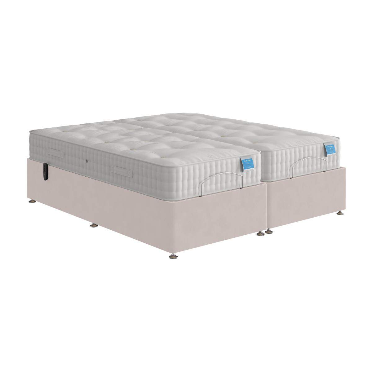 Make life more comfortable with this adjustable divan bed base from Sleep Story. As well as helping you get in and out of bed, it makes finding your perfect sleeping position so easy. Why you'll love it Personalise your comfort with this 5-part adjustable divan base. This double size adjustable base makes it easier to get in and out of bed. Promotes healthy posture during sleep. Enjoy the comfiest seated position to read or watch TV. Wireless handheld remote control makes adjusting this base so simple. With optional storage drawers. Slatted wood base provides excellent mattress support. Choose from a huge range of beautiful upholstery fabrics and colours. Made in the UK. Only at Furniture Village. This adjustable divan base is part of our Sleep Story bed range. What you need to know Mattress sold separately. Please check the suitability of any mattress you are considering for this adjustable base. Do not sit on this adjustable bed with the foot end in a raised position. Clean regularly using a soft brush or vacuum with the curtain attachment. Deal with any spills promptly. Professional cleaning advised for oil- and grease-based stains. Some fabrics can show wear on areas of more use or in direct sunlight.