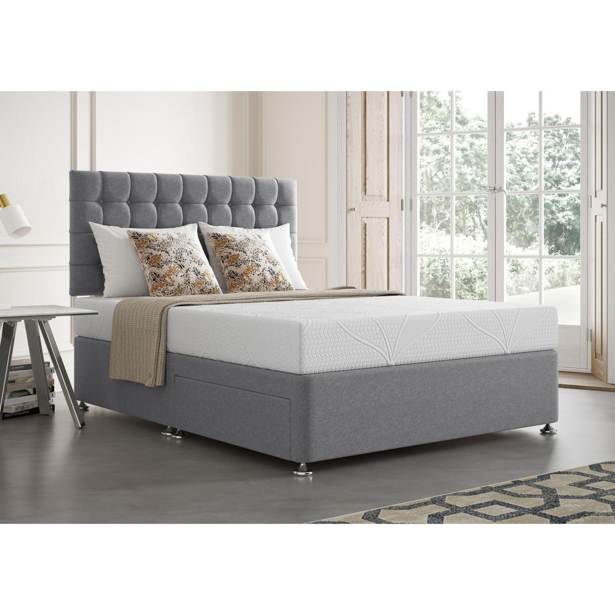 The Sleep Story Cool Gel 2000 divan set combines an innovative, cooling memory foam and gel mattress with a very stylish divan base with a choice of drawer storage. Headboard shown available separately. Why you'll love it. Sublimely comfortable, supportive and cooling. Pressure relieving, responsive memory foam. Firmer feel, great support for your back. A 3.8cm layer of cooling gel draws heat away from your body. So you sleep on a fresh, cooling surface. A ventilated border promotes airflow. Easy care, non-turn mattress. You only need to rotate it occasionally. Contemporary divan base in a wide choice of colours. With no drawers or drawer storage in a choice of configurations. A Furniture Village exclusive. What you need to know. Mattress type: Gel memory foam. Depth: 20cm. Firmness: Firm feel. Springs: No. Pillow top: No. Mattress delivered rolled to reduce delivery footprint. Fillings: Memory foam topped with 3.8cm gel. Borders: Ventilated.li>. Edge to edge support: Yes. Cover: Knitted. Requires turning: No. Sizes: Single, double, king, super king. Drawer configurations available: 2 drawer, 4 drawer, 2+2 drawer. Double, king and super king divan bases are delivered in two pieces for ease of delivery. Mattress care: Please allow mattress to fully recover before use. It may have a faint odour which will dissipate after airing for 4 hours. Due to the pressure relieving properties of the material it may take some time before you become accustomed to the level of comfort and support. Rotate regularly. We recommend the use of a mattress protector.