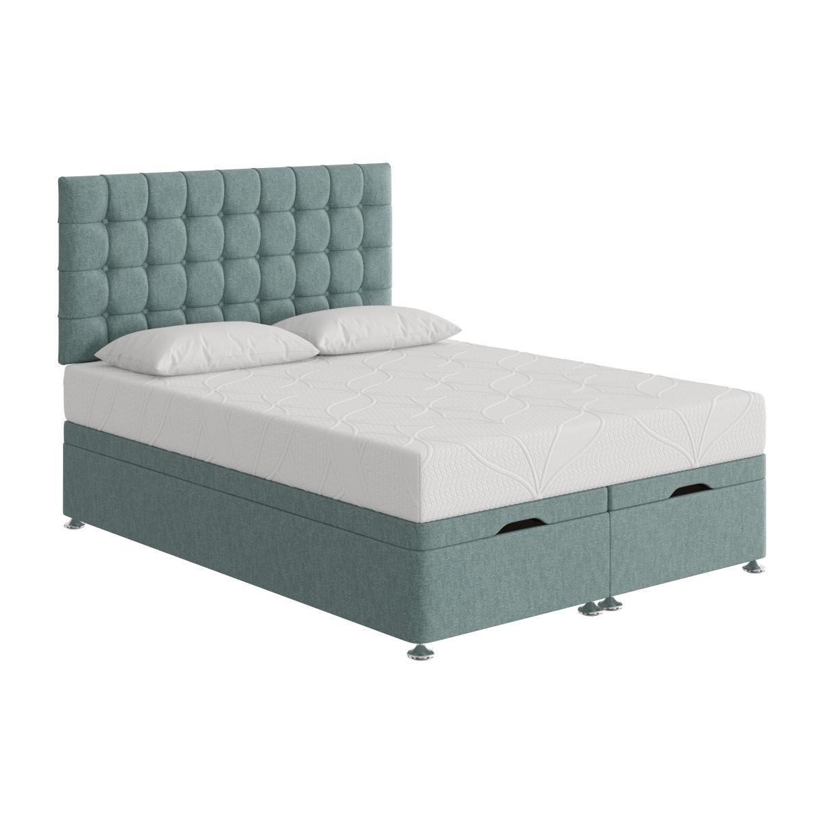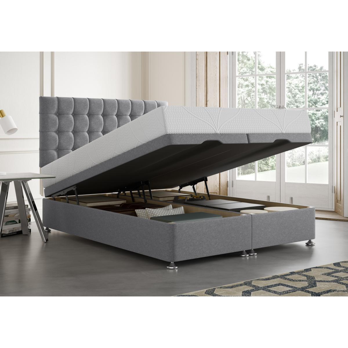 Store away bedding and more with ease, with the Sleep Story Cool Gel 2000 end lift ottoman divan set. The memory foam and cooling gel mattress is sublimely comfortable. Headboard shown available separately. Why you'll love it. Sublimely comfortable, firmer feel and cooling. Pressure relieving, responsive memory foam. A 3.8cm layer of cooling gel draws heat away from your body. So you sleep on a fresh, cooling surface. A ventilated border promotes airflow. Easy care, non-turn mattress. You only need to rotate it occasionally. Contemporary divan base in a wide choice of colours. Piston-assisted end lift ottoman, easy to open. A Furniture Village exclusive. What you need to know. Mattress type: Gel memory foam. Depth: 20cm. Firmness: Firm feel. Springs: No. Pillow top: No. Mattress delivered rolled to reduce delivery footprint. Fillings: Memory foam topped with 3.8cm gel. Borders: Ventilated.li>. Edge to edge support: Yes. Cover: Knitted. Requires turning: No. Sizes: Single, double, king, super king. Storage: End-lift ottoman storage. Double, king and super king divan bases are delivered in two pieces for ease of delivery. Mattress care: Please allow mattress to fully recover before use. It may have a faint odour which will dissipate after airing for 4 hours. Due to the pressure relieving properties of the material it may take some time before you become accustomed to the level of comfort and support. Rotate regularly. We recommend the use of a mattress protector.