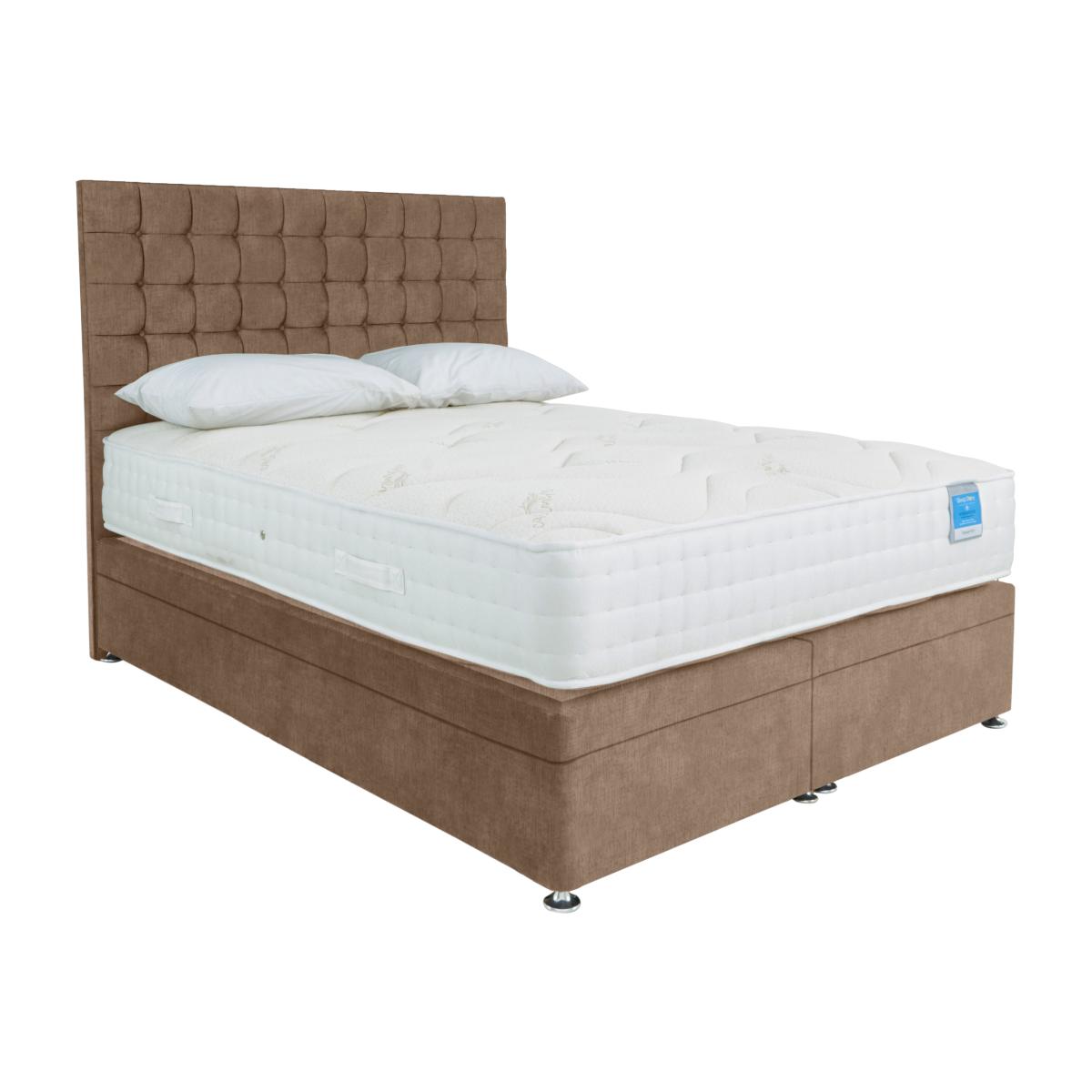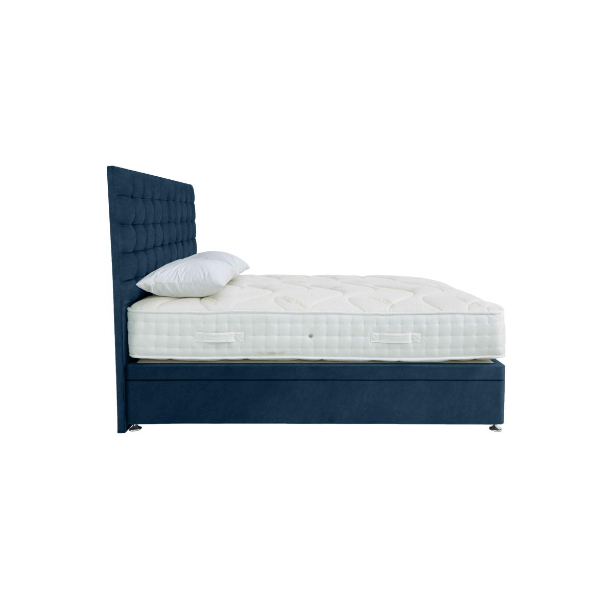 This Sleep Story power ottoman divan set has it all – an extra-firm mattress and an extra-easy electric powered ottoman base. By Highgrove for Furniture Village. Why you'll love it Easier bedroom storage meets extra-firm mattress comfort in this power ottoman divan set. Style, comfort and effortless storage at a great-value price. Mattress offers extra support for a better night’s sleep. With 1000 supportive pocket springs in king size. Ultra-soft cashmere blend mattress cover. Hypoallergenic. Power ottoman divan base means roomy storage – with no lifting required. Child lock feature makes the electric mechanism as safe as it is simple. Platform-top style for excellent mattress support. Choose from a wide selection of stylish upholstery fabrics. Made in the UK by Highgrove and exclusive to Furniture Village. Only available online. This power ottoman divan set is part of the Sleep Story Deluxe Firm range. What you need to know Headboard is an optional extra. Mattress type: Pocket spring and reflex foam. Depth: 25.5 cm. Firmness: Extra firm. Springs: 1000 pocket springs in king size. Pillow top: No. Fillings: 5 cm reflex foam. Cover: Cashmere blend. Requires turning:Yes. Base type: Platform top with electric-powered end-opening ottoman storage base. Sizes: Small single, single, small double, double, king and super king. Mattress care:Air for 4 hours before using to remove any odour. Indentations caused by settlement of fillings or body weight are normal and are not considered defects. If used on a slatted bed frame, the space between slats must be no wider than 7.5 cm. Spaces wider than this may cause excess dipping of the mattress and invalidate the guarantee. Always use a mattress protector. Rotate regularly. Divan base care: Clean upholstery weekly using a soft brush or vacuum with the curtain attachment. Professional cleaning advised for oil- and grease-based stains. Be careful care when opening and closing the ottoman base. The ottoman base is powered by mains electricity. Please ensure that you will be able to connect it to a power source before ordering. Ordering a small double, double, king or super king size? Your divan base will be supplied in two halves for easier access.