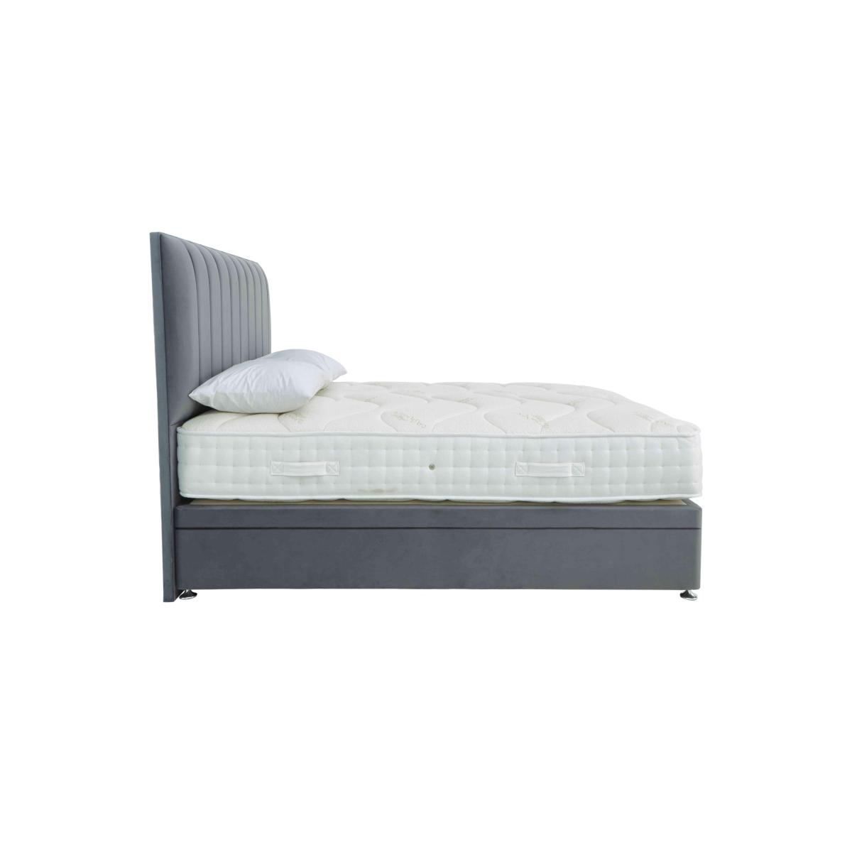 This Sleep Story power ottoman divan set has it all – an extra-firm mattress and an extra-easy electric powered ottoman base. By Highgrove for Furniture Village. Why you'll love it Easier bedroom storage meets extra-firm mattress comfort in this power ottoman divan set. Style, comfort and effortless storage at a great-value price. Mattress offers extra support for a better night’s sleep. With 1000 supportive pocket springs in king size. Ultra-soft cashmere blend mattress cover. Hypoallergenic. Power ottoman divan base means roomy storage – with no lifting required. Child lock feature makes the electric mechanism as safe as it is simple. Platform-top style for excellent mattress support. Choose from a wide selection of stylish upholstery fabrics. Made in the UK by Highgrove and exclusive to Furniture Village. Only available online. This power ottoman divan set is part of the Sleep Story Deluxe Firm range. What you need to know Headboard is an optional extra. Mattress type: Pocket spring and reflex foam. Depth: 25.5 cm. Firmness: Extra firm. Springs: 1000 pocket springs in king size. Pillow top: No. Fillings: 5 cm reflex foam. Cover: Cashmere blend. Requires turning: Yes. Base type: Platform top with electric-powered end-opening ottoman storage base. Sizes: Small single, single, small double, double, king and super king. Mattress care:Air for 4 hours before using to remove any odour. Indentations caused by settlement of fillings or body weight are normal and are not considered defects. If used on a slatted bed frame, the space between slats must be no wider than 7.5 cm. Spaces wider than this may cause excess dipping of the mattress and invalidate the guarantee. Always use a mattress protector. Rotate regularly. Divan base care: Clean upholstery weekly using a soft brush or vacuum with the curtain attachment. Professional cleaning advised for oil- and grease-based stains. Be careful care when opening and closing the ottoman base. The ottoman base is powered by mains electricity. Please ensure that you will be able to connect it to a power source before ordering. Ordering a small double, double, king or super king size? Your divan base will be supplied in two halves for easier access.
