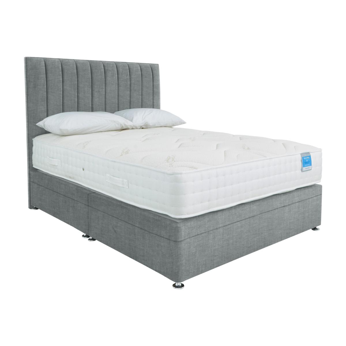 If you sleep better on an extra firm mattress, then this is the divan set for you. The stylish base has side-opening ottoman storage, ideal for smaller bedrooms. Made by Highgrove and only at Furniture Village. Why you'll love it. High-quality extra-firm mattress and ottoman divan base at an amazing price. Mattress offers extra support for a better night’s sleep. With 1000 supportive pocket springs in king size. Ultra-soft cashmere blend mattress cover. Hypoallergenic. Platform-top base has space-saving side-opening ottoman storage. Choose from a wide selection of upholstery fabrics. Made in the UK by Highgrove and exclusive to Furniture Village. The Sleep Story Deluxe Firm range includes a mattress and ottoman divan sets. What you need to know. Headboard is an optional extra. Mattress type: Pocket spring and reflex foam. Depth: 25.5 cm. Firmness: Extra firm. Springs: 1000 pocket springs in king size. Pillow top: No. Fillings: 5 cm reflex foam. Cover: Cashmere blend. Requires turning: Yes. Base type: Platform top with side-opening ottoman storage. Sizes: Small single, single, small double, double, king and super king. Mattress care: Air for 4 hours before using to remove any odour. Allow at least 4 hours for springs to settle and for mattress to attain its full size. Indentations caused by settlement of fillings or body weight are normal and are not considered defects. If used on a slatted bed frame, the space between slats must be no wider than 7.5 cm. Spaces wider than this may cause excess dipping of the mattress and invalidate the guarantee. Always use a mattress protector. Rotate regularly. Divan base care: Clean upholstery weekly using a soft brush or vacuum with the curtain attachment. Professional cleaning advised for oil- and grease-based stains. Please note: Divan base is supplied in two halves for small double, double, king and super king sizes.
