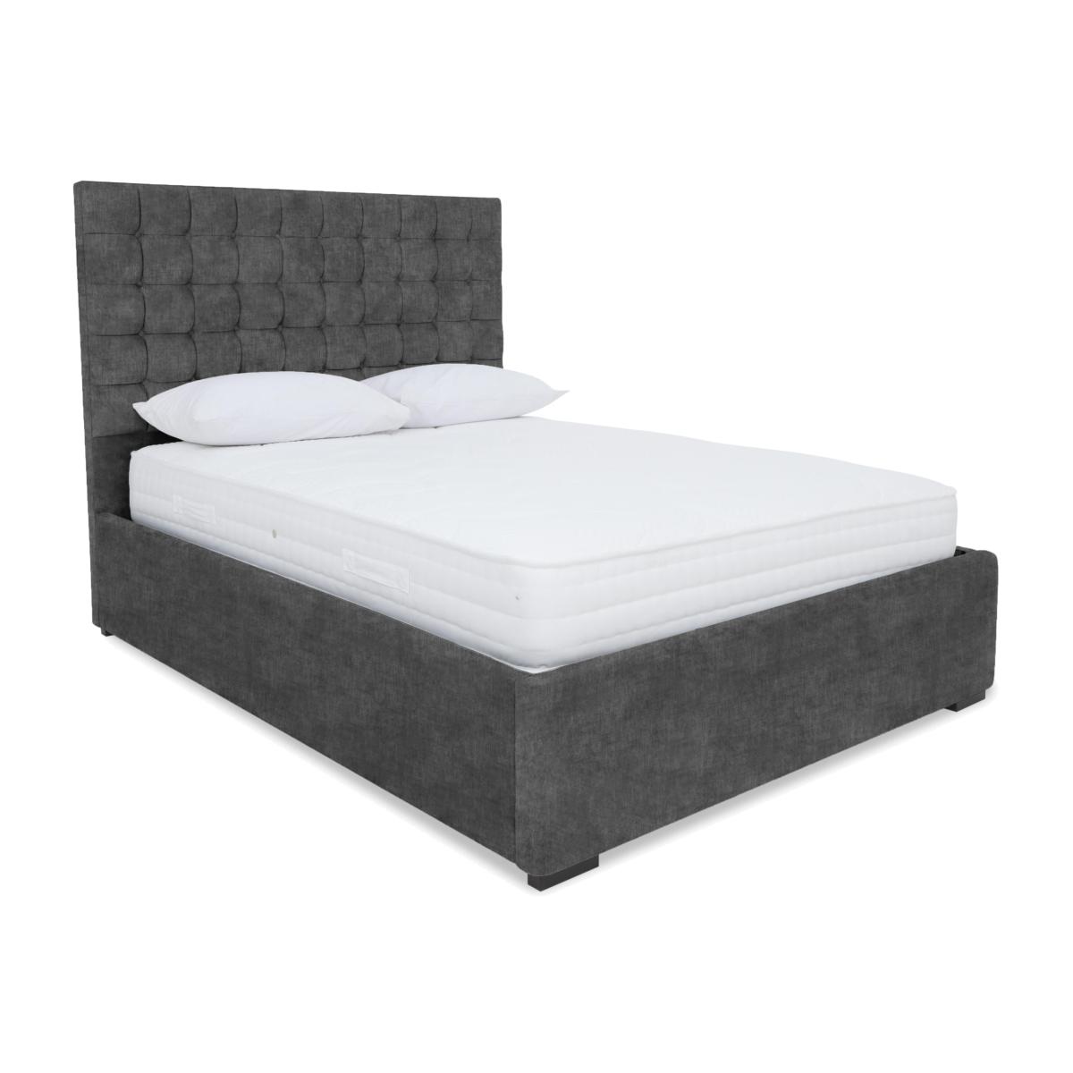 Our great-value Sleep Story Dice collection makes light work of transforming any bedroom into a haven of contemporary luxury. With its signature style motif – modern geometric buttoning – this collection includes electric and manual ottoman storage bed frames, headboards and even a footboard all of which are available in a choice of upholstery fabrics. Looking to update an existing divan bed? A Dice headboard and footboard will instantly elevate its look. And if you need extra storage, a Dice ottoman bed frame makes it easy to stow away bedding and pillows. The Sleep Story Dice collection is handcrafted in the UK by Highgrove and is exclusively available at Furniture Village. Contemporary luxury style meets spacious storage in this fabulous electric ottoman bed frame that’s so easy to open and close. Only at Furniture Village. Why you'll love it Make life easier and your bedroom more stylish with this electric ottoman bed frame. Contemporary luxury plus impressive extra storage at an exceptional price. The ottoman lift mechanism is electric powered so accessing the storage space is effortless. Bold geometric headboard with sumptuous cushioning. High-quality fabric upholstery in a wide choice of lovely colours. Sturdy wooden slatted mattress support. In small double, double, king and super king bed sizes. Handmade in the UK by Highgrove. Exclusively available at Furniture Village. This electric ottoman bed frame is part of our Sleep Story collection. What you need to know Mattress sold separately. Mattress base is composed of 28 wood slats in king size. This ottoman bed frame opens at the end. Maximum mattress weight is 80 kg for all sizes. Please keep hands clear of the mechanism when opening and closing the ottoman. Do not sit on the foot end of this ottoman bed frame when opening. Clean regularly using a soft brush or vacuum with the curtain attachment. Deal with any spills promptly. Professional cleaning advised for oil- and grease-based stains. Some fabrics can show wear on areas of more use or in direct sunlight. Flattening and shading of heavy wear areas on pile fabrics like velvet is unavoidable. Be sure to brush pile fabrics only in the direction of the pile. Please read our upholstery care guide for more advice.