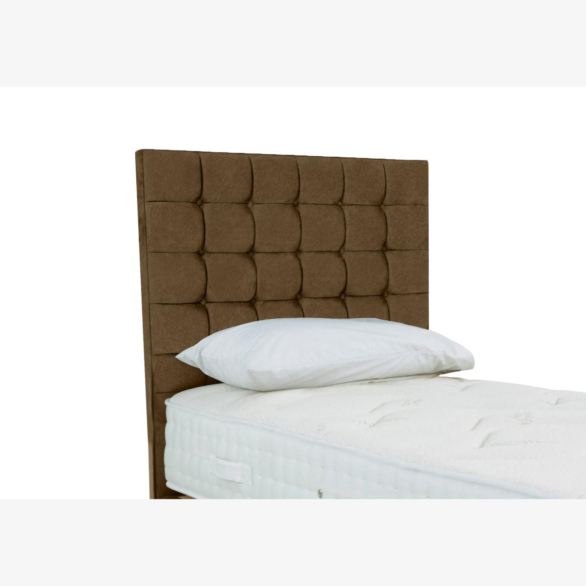 Our great-value Sleep Story Dice collection makes light work of transforming any bedroom into a haven of contemporary luxury. With its signature style motif – modern geometric buttoning – this collection includes electric and manual ottoman storage bed frames, headboards and even a footboard all of which are available in a choice of upholstery fabrics. Looking to update an existing divan bed? A Dice headboard and footboard will instantly elevate its look. And if you need extra storage, a Dice ottoman bed frame makes it easy to stow away bedding and pillows. The Sleep Story Dice collection is handcrafted in the UK by Highgrove and is exclusively available at Furniture Village. The Sleep Story Dice floor standing headboard has a modern design that makes an instant impression. Generously cushioned, it provides support as well as incredible style. Why you'll love it Modern headboard with a cubed, geometric design. Beautifully cushioned design that feels indulgent. Make it your own with our range of beautiful fabrics and colours. High-end style and quality. What you need to know Sizes: Single, small double, double, king, super king. Complete the look with a matching head and footboard. Designed to complement Sleepstory divans and mattresses. Care:Some fabrics can show wear on areas of more use or in direct sunlight. Please Note: Orders placed with 72-hour delivery must be submitted before 1:30 pm on working days to qualify for the delivery time window. Please note that 72-hour delivery is only available on selected colours and sizes.