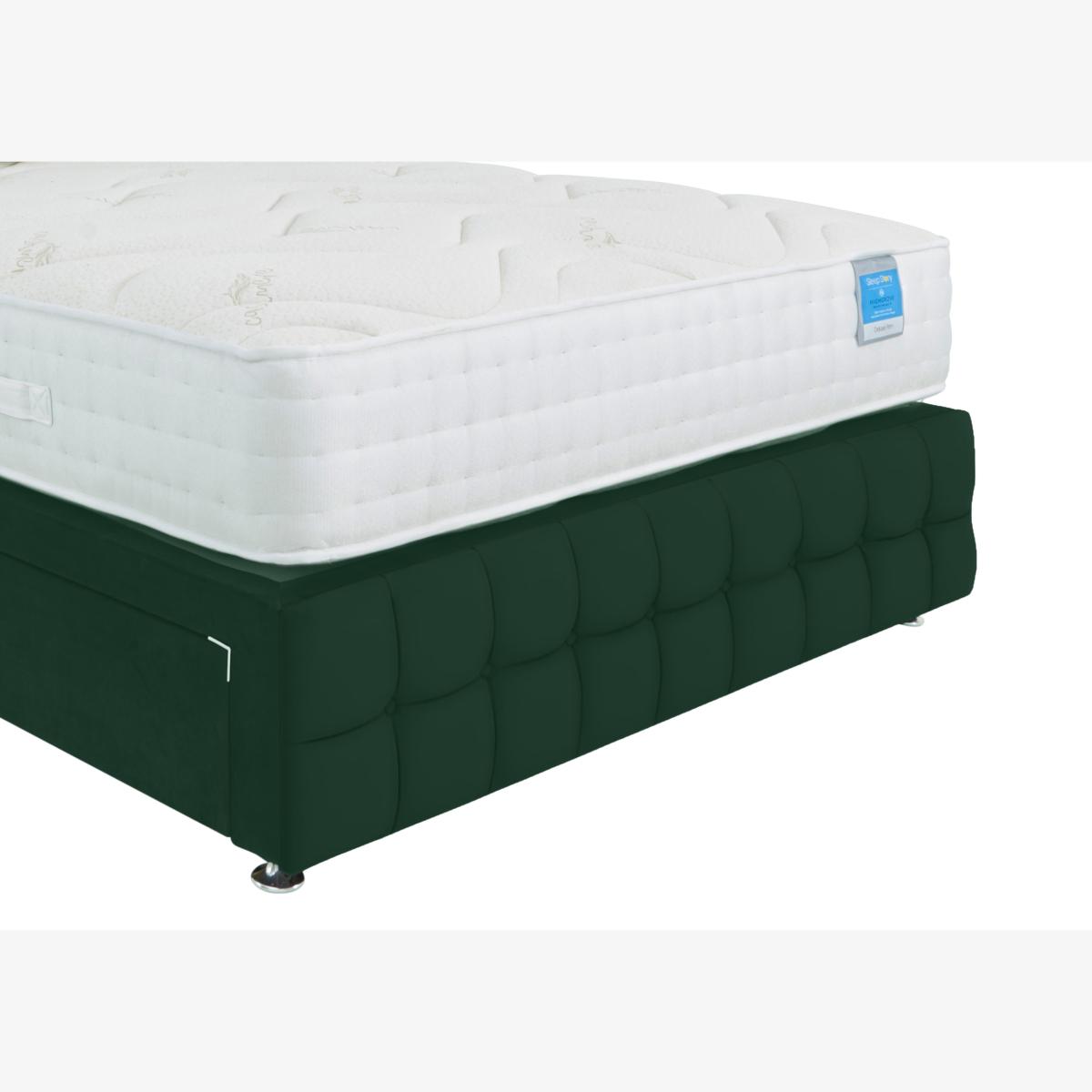 Our great-value Sleep Story Dice collection makes light work of transforming any bedroom into a haven of contemporary luxury. With its signature style motif – modern geometric buttoning – this collection includes electric and manual ottoman storage bed frames, headboards and even a footboard all of which are available in a choice of upholstery fabrics. Looking to update an existing divan bed? A Dice headboard and footboard will instantly elevate its look. And if you need extra storage, a Dice ottoman bed frame makes it easy to stow away bedding and pillows. The Sleep Story Dice collection is handcrafted in the UK by Highgrove and is exclusively available at Furniture Village. The Dice footboard: perfect for that nestled-in feeling. A stylish addition to your Sleep Story divan base. Why you'll love it The finishing touch. Chic geometric design. Choose from a range of beautiful fabrics. Luxe cushioning. Button details. Handmade in Britain for Furniture Village. What you need to know Must be ordered at the same time as your divan base. The footboard is built into the divan base and is non removable. Upholstered to match the Dice headboard. Designed to complement Sleep Story divans and mattresses. Available in standard bed sizes.