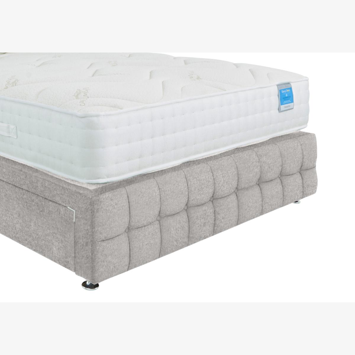 Our great-value Sleep Story Dice collection makes light work of transforming any bedroom into a haven of contemporary luxury. With its signature style motif – modern geometric buttoning – this collection includes electric and manual ottoman storage bed frames, headboards and even a footboard all of which are available in a choice of upholstery fabrics. Looking to update an existing divan bed? A Dice headboard and footboard will instantly elevate its look. And if you need extra storage, a Dice ottoman bed frame makes it easy to stow away bedding and pillows. The Sleep Story Dice collection is handcrafted in the UK by Highgrove and is exclusively available at Furniture Village. The Dice footboard: perfect for that nestled-in feeling. A stylish addition to your Sleep Story divan base. Why you'll love it The finishing touch. Chic geometric design. Choose from a range of beautiful fabrics. Luxe cushioning. Button details. Handmade in Britain for Furniture Village. What you need to know Must be ordered at the same time as your divan base. The footboard is built into the divan base and is non removable. Upholstered to match the Dice headboard. Designed to complement Sleep Story divans and mattresses. Available in standard bed sizes.