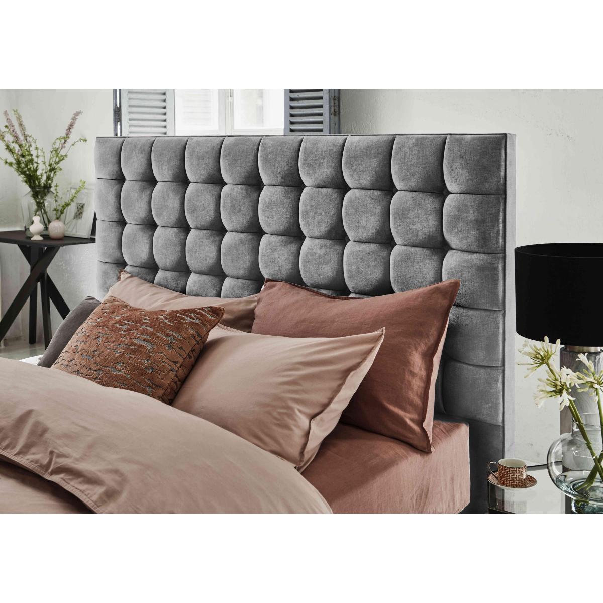 This fabulous ottoman bed frame with its very striking geometric headboard will instantly bring style and storage to your bedroom. A luxury ottoman bed frame at a great-value price. Why you'll love it Update your bedroom look – and storage – with this ottoman bed frame. Luxury style, impressive storage and exceptional value for money. Bold and contemporary geometric headboard. Sumptuously comfortable cushioning. Very spacious ottoman storage base with wooden slatted mattress support. Wood feet. High-quality fabric upholstery in a wide choice of lovely colours. Handmade in the UK by Highgrove. Exclusively available at Furniture Village. This end-opening ottoman bed frame is part of our Sleep Story collection. What you need to know Mattress sold separately. Ottoman opens at the end. In small double, double, king and super king sizes. Please keep hands clear of the mechanism when opening and closing. Clean regularly using a soft brush or vacuum with the curtain attachment. Deal with any spills promptly. Professional cleaning advised for oil- and grease-based stains. Some fabrics can show wear on areas of more use or in direct sunlight. Flattening and shading of heavy wear areas on pile fabrics like velvet is unavoidable. Be sure to brush pile fabrics only in the direction of the pile. Please read our upholstery care guide for more advice.